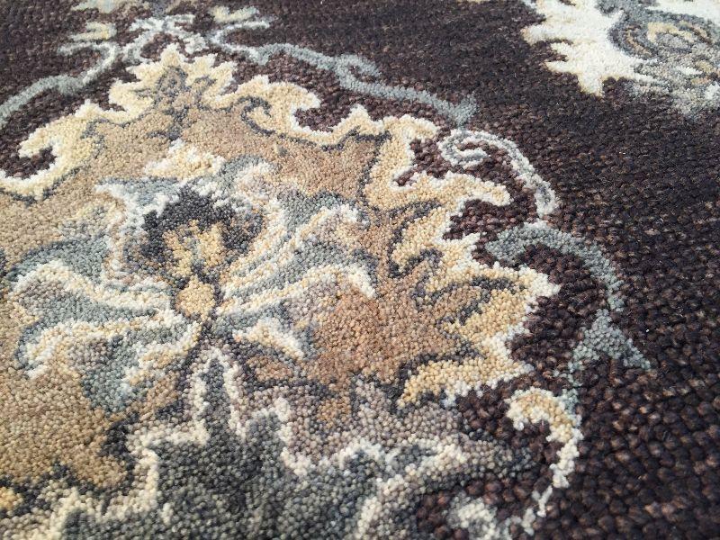 5X7.6" Beautiful decorative all over design, heavy and thick wool pile in up to date colors Hand crafted and tufted in India