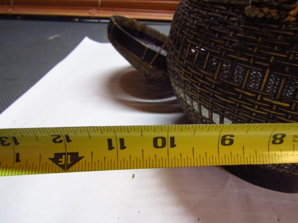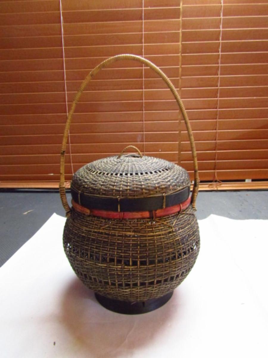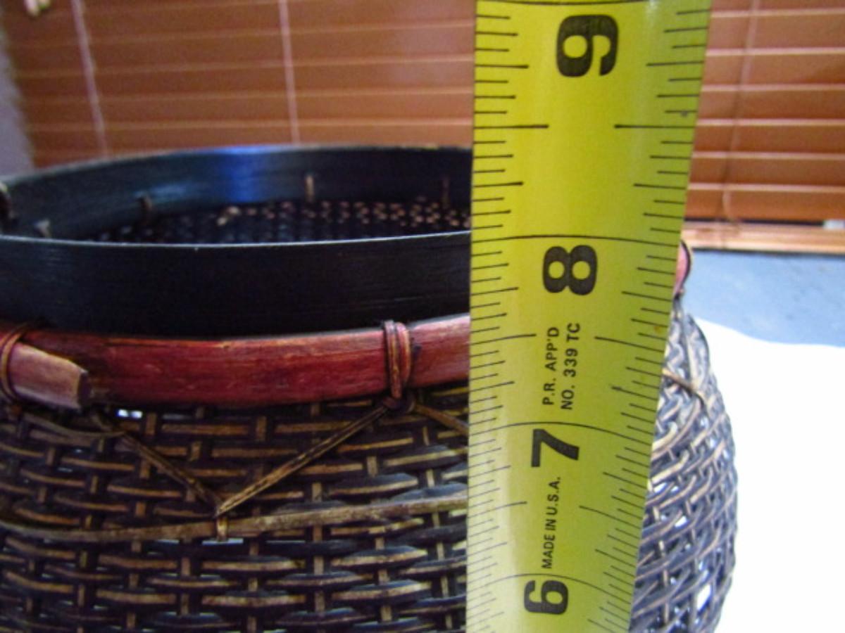 Decorative Woven Basket with Lid- Baskets #8 (G). Please see last picture- small area of unwinding on handle.