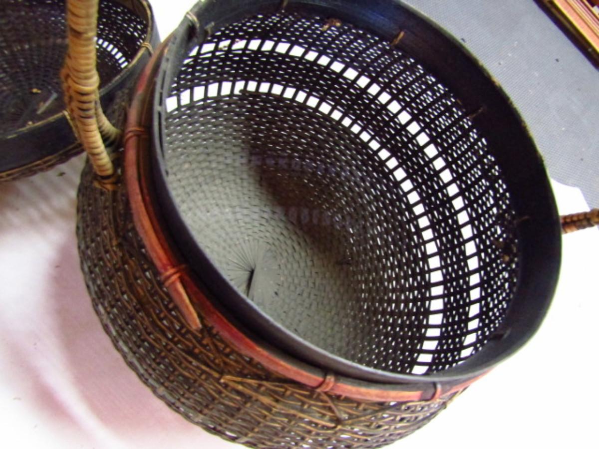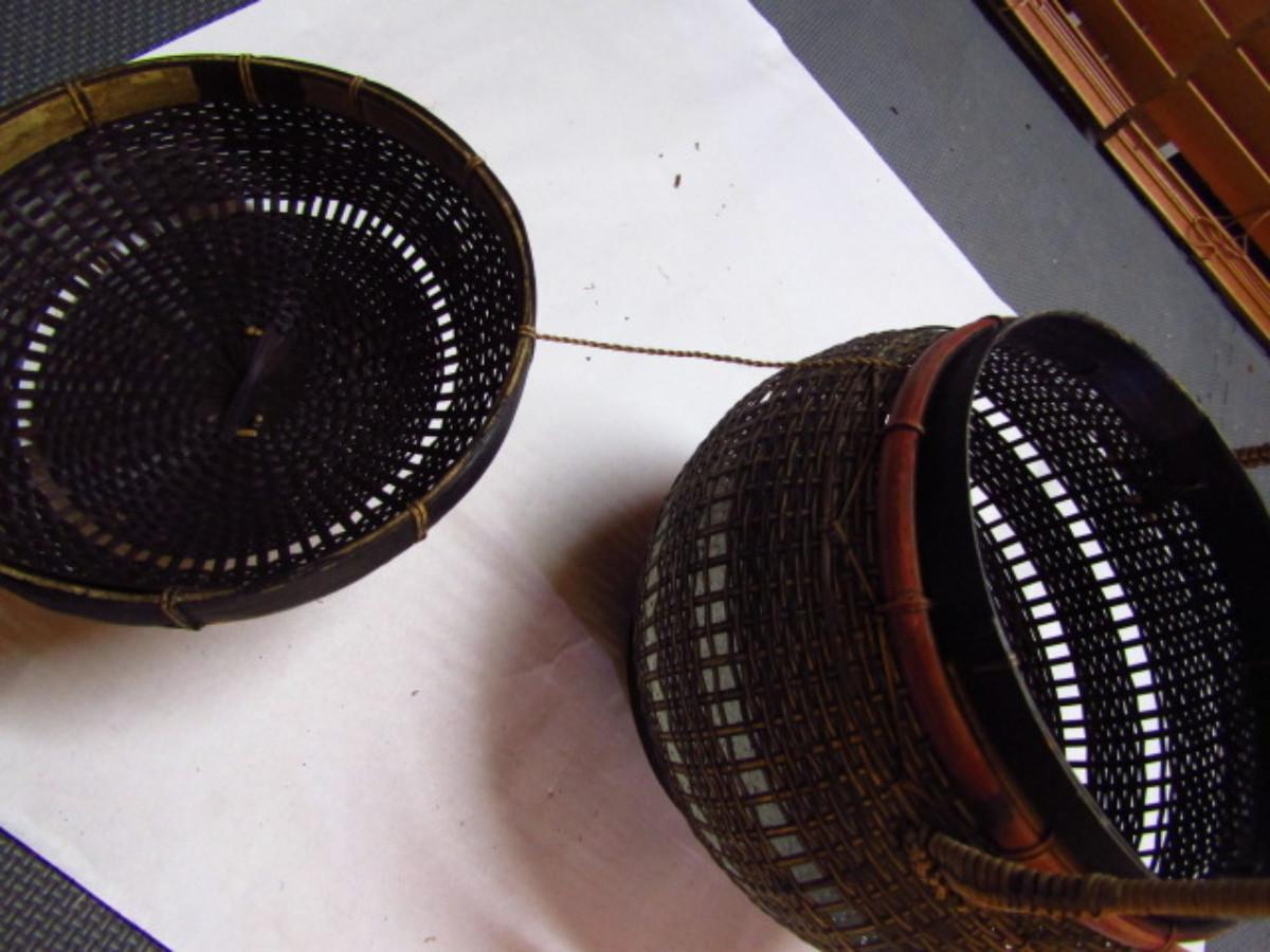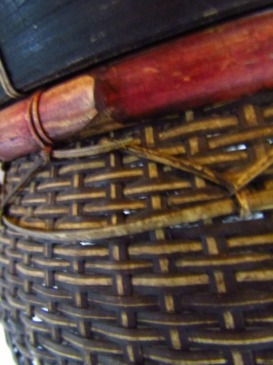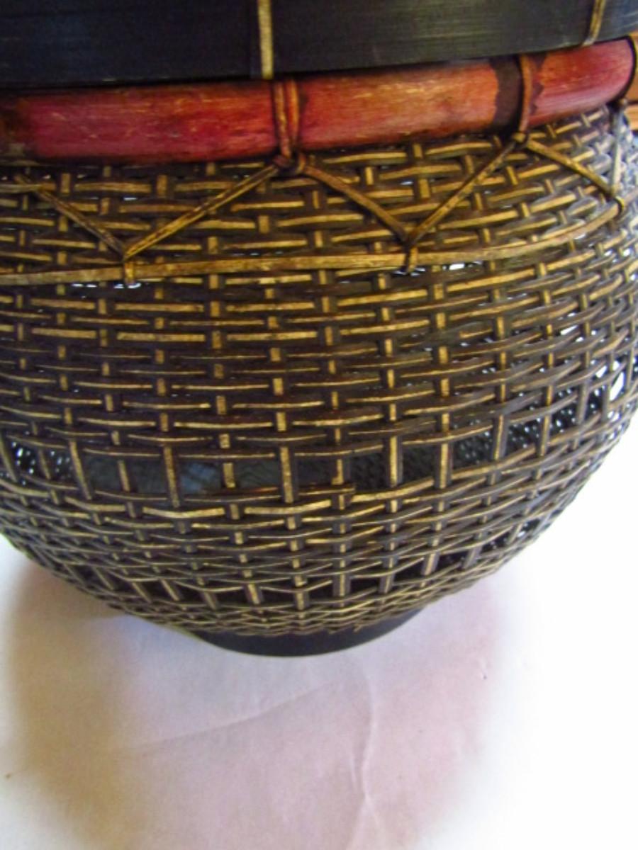 Decorative Woven Basket with Lid- Baskets #8 (G). Please see last picture- small area of unwinding on handle.