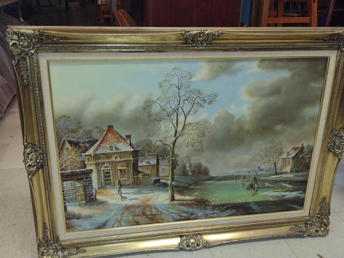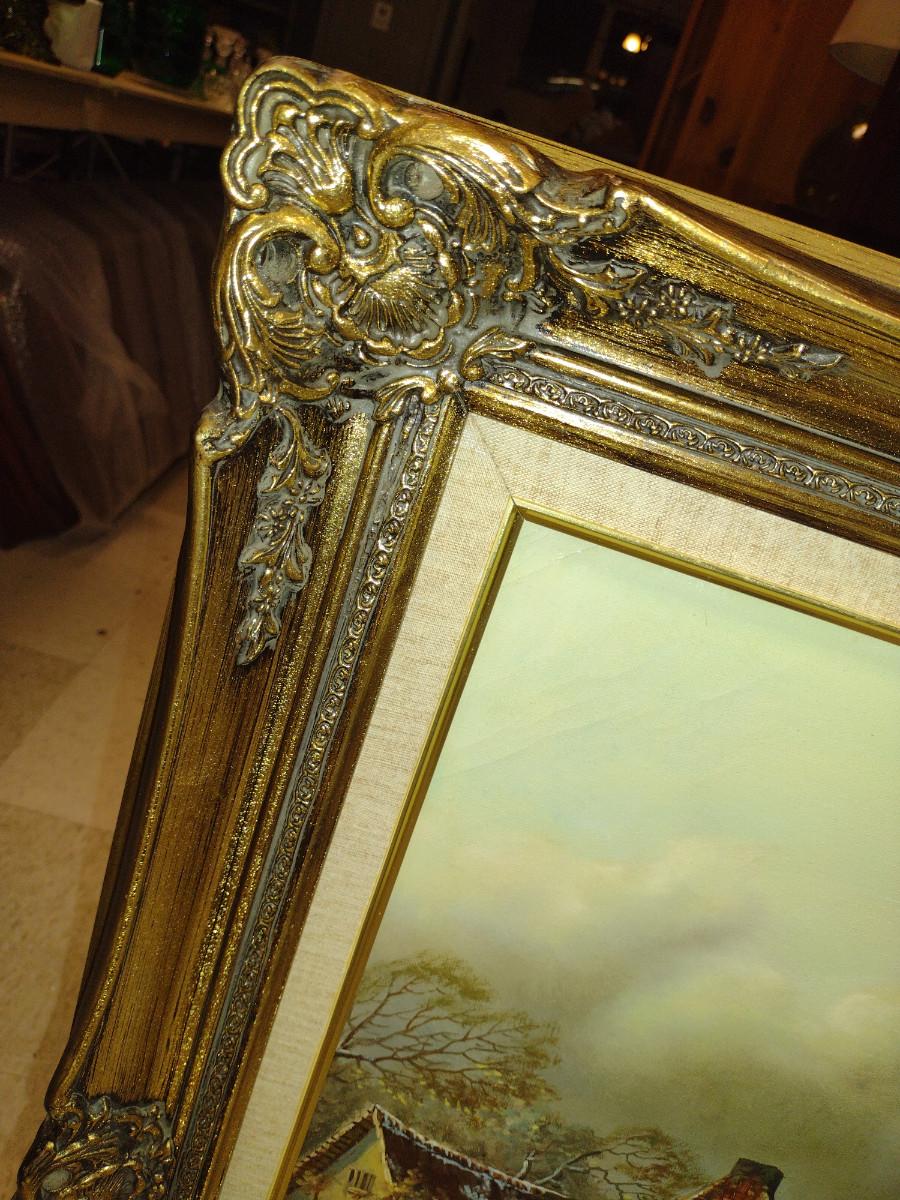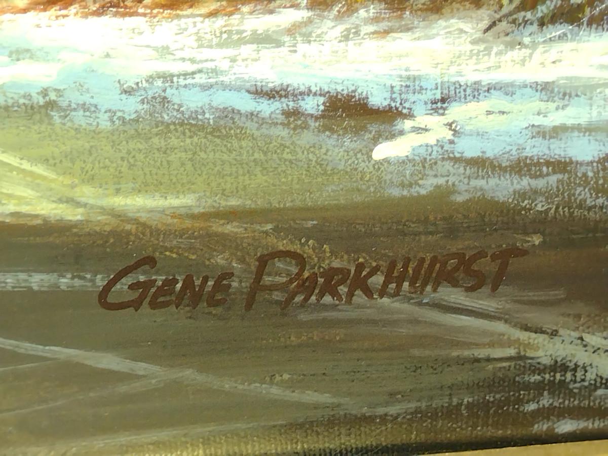 Decoratively Framed Landscape Painting on Canvas by Gene Parkhurst- Approx 43" x 31 1/2"
