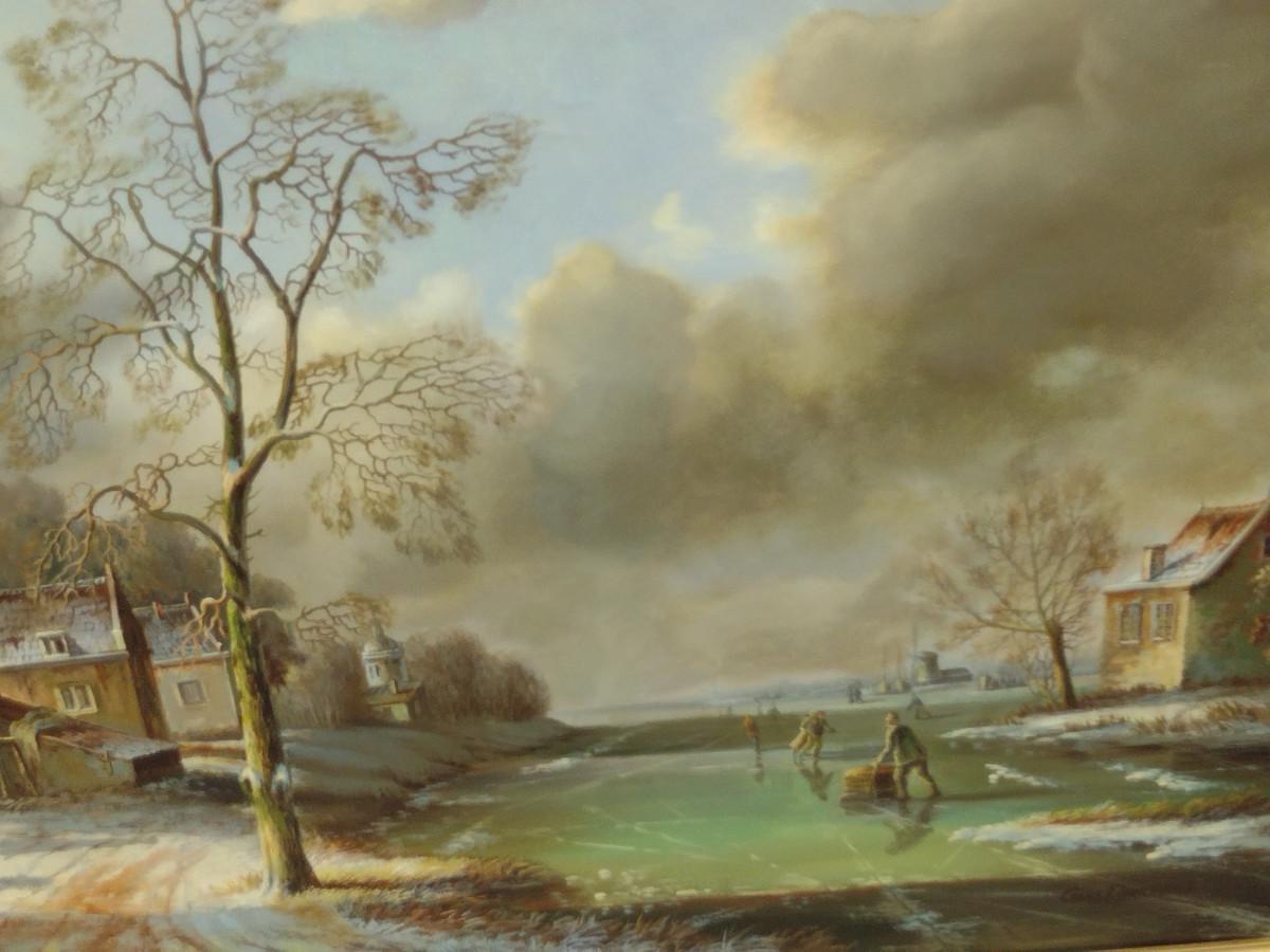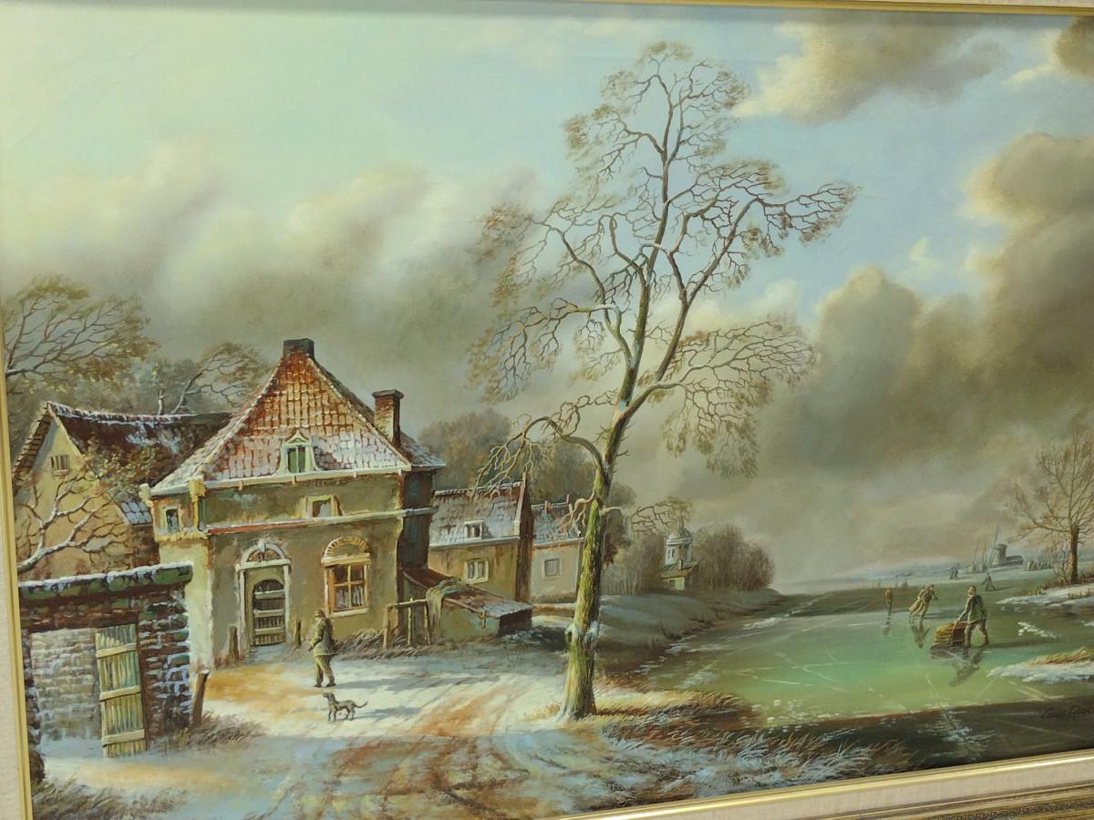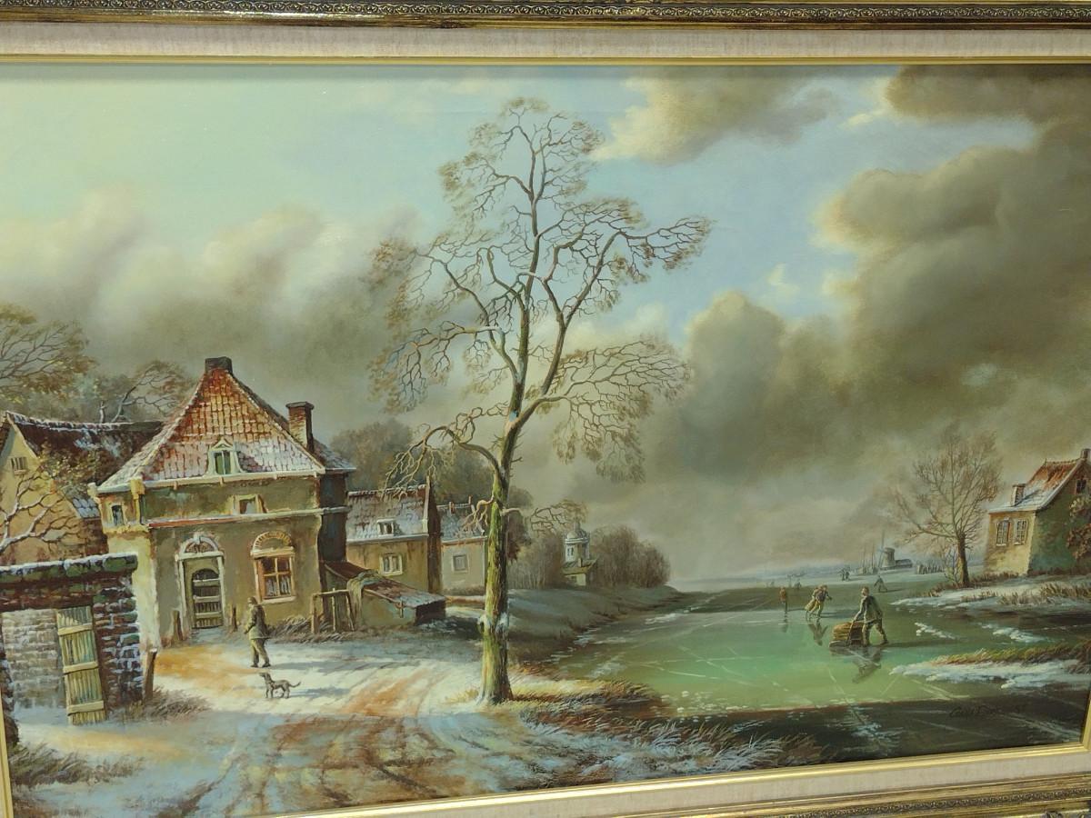 Decoratively Framed Landscape Painting on Canvas by Gene Parkhurst- Approx 43" x 31 1/2"