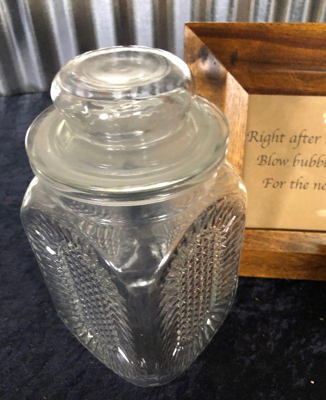 DECORATOR LOT GLASS JAR, FRAME & WOOD BOX