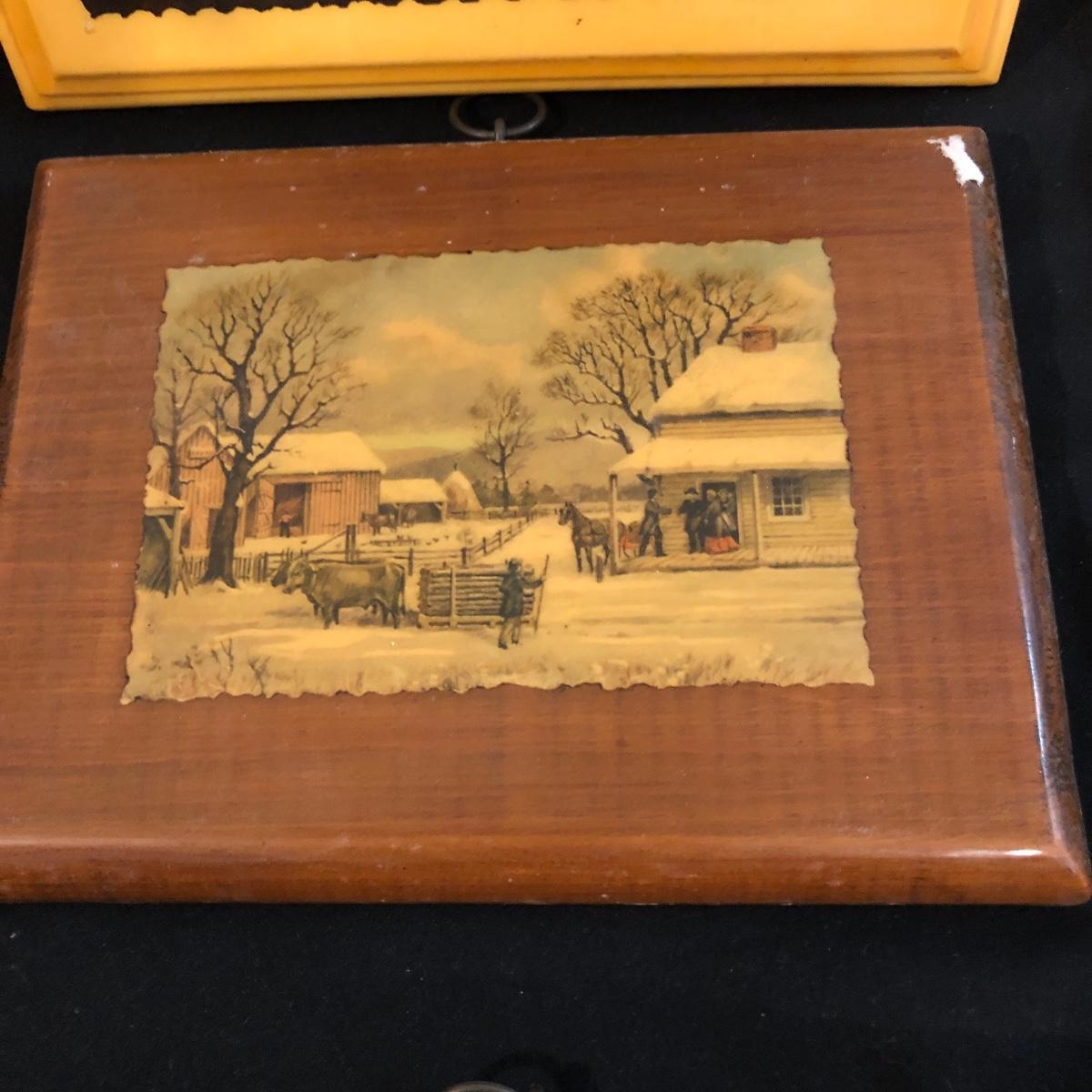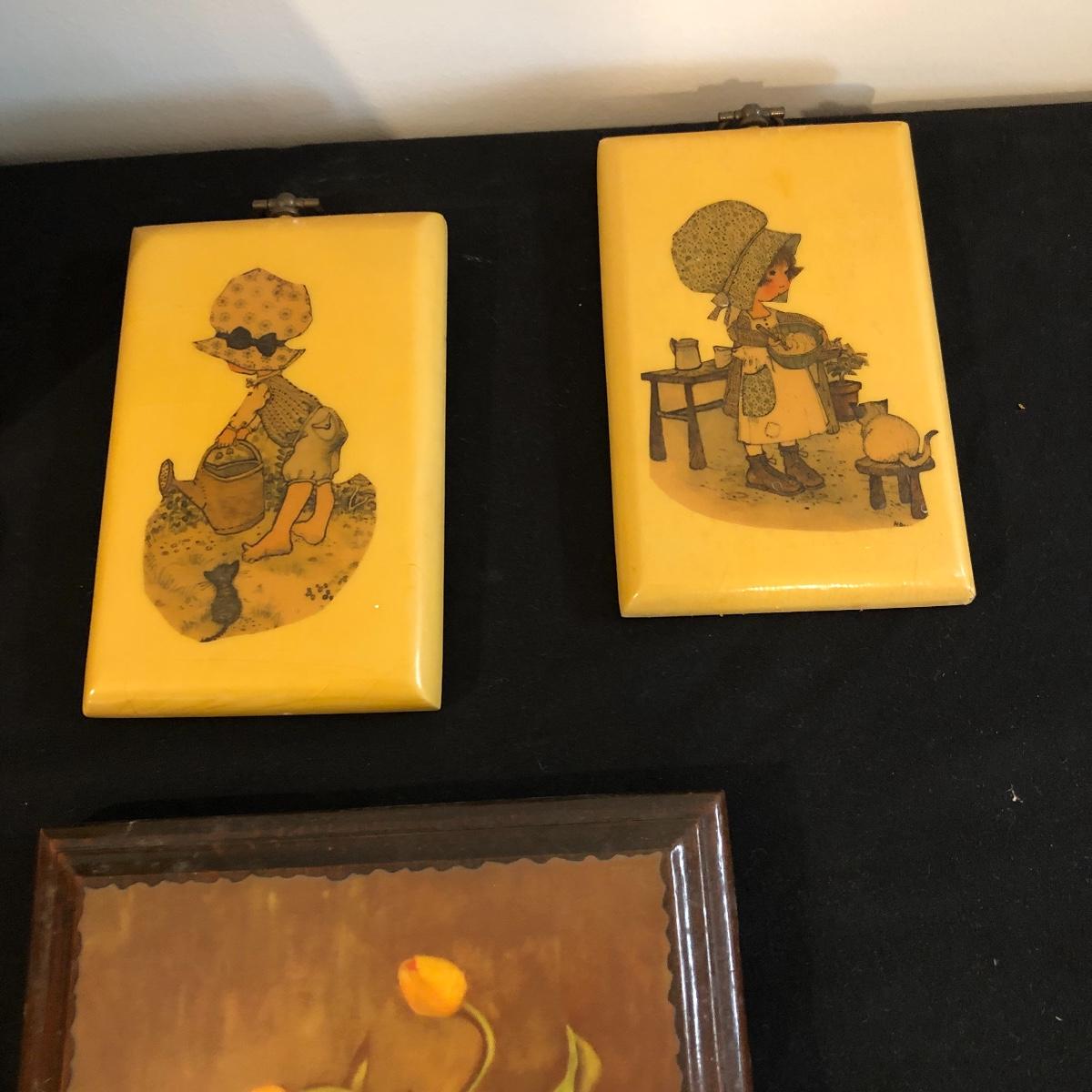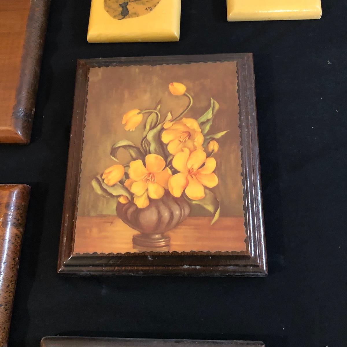 There are ten pieces of decoupage art - all on wood. The largest measures 9.5” x 11.5”. Shipping Available.
