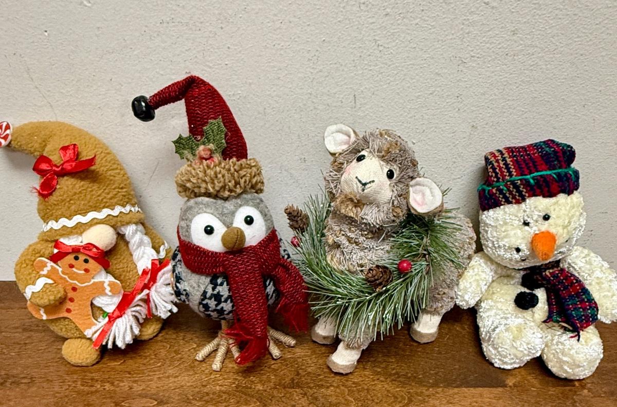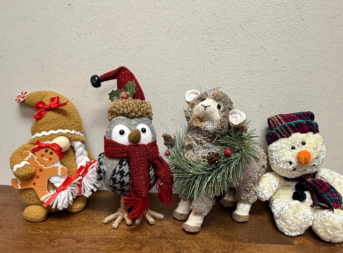 Christmas Plush Lot - Gingerbread Gnome, Owl, Lamb, Snowman