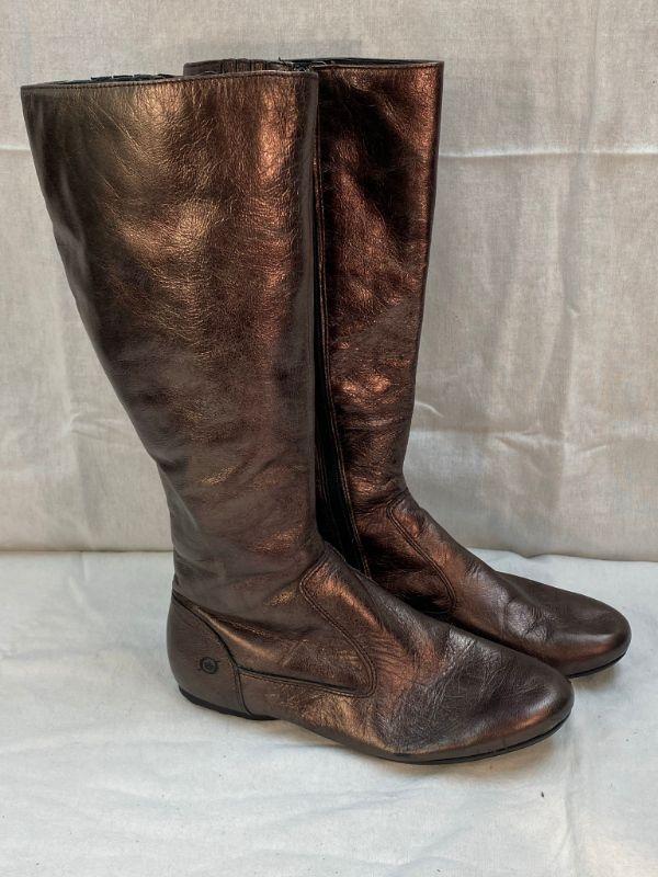 Deep Metallic Brown Zipper Boots by Born Size 8.5 YD#020-1220-02203