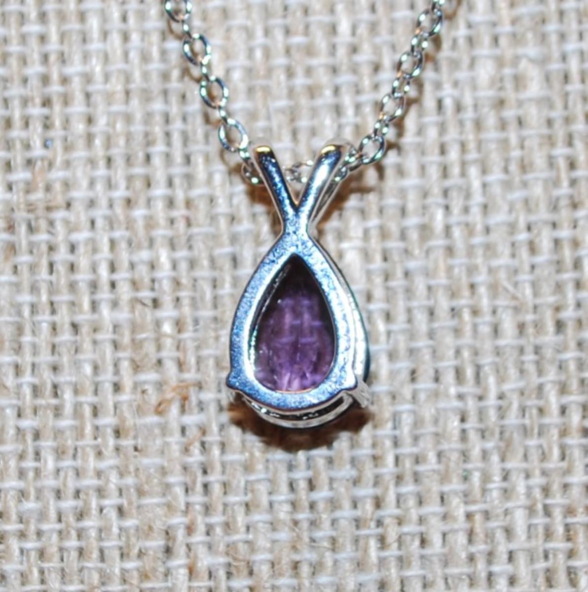 Deep Purple Pear Shape Double Hooked PENDANT (½" x ½") on a Silver Tone Necklace Chain 17" L