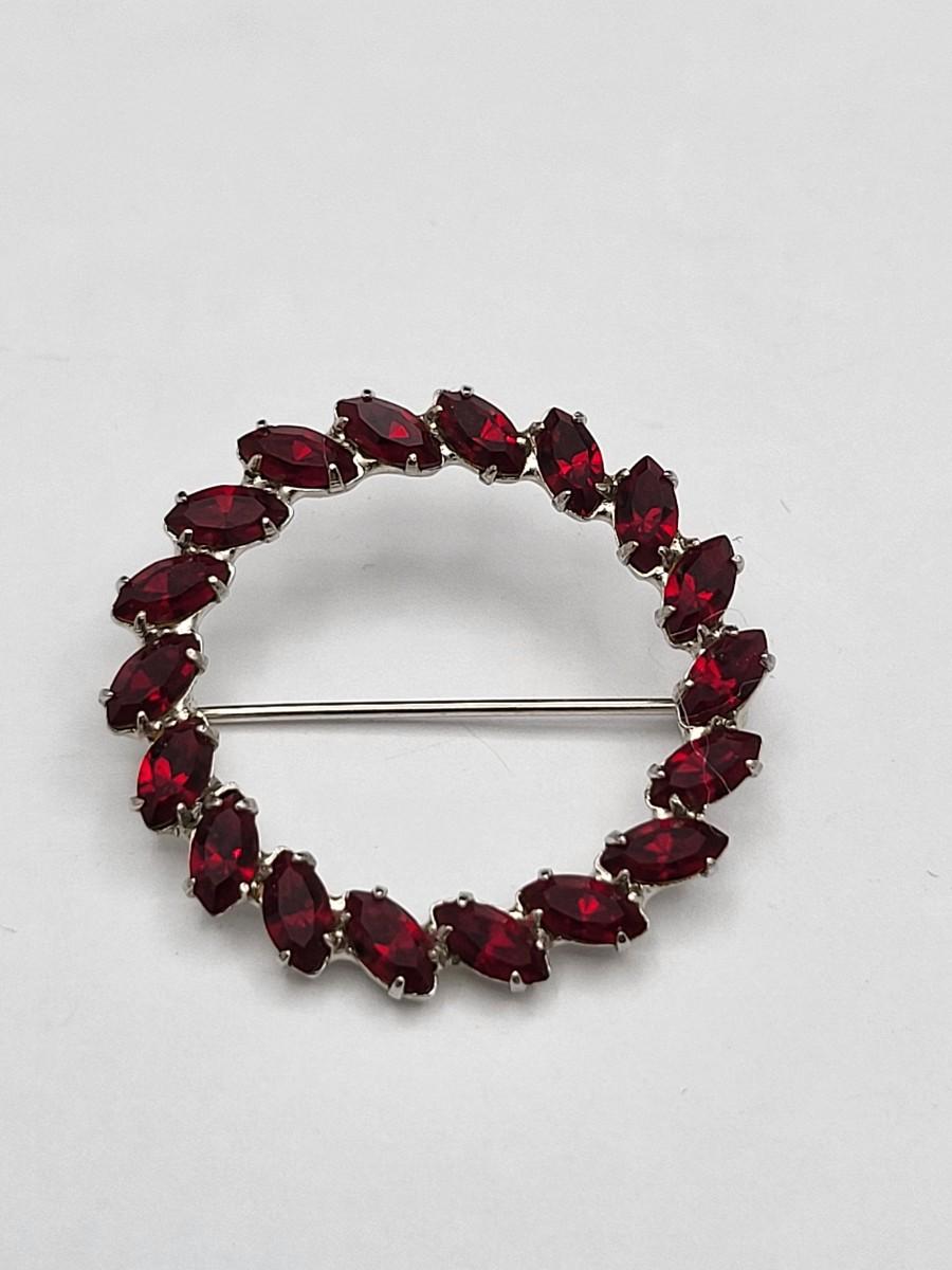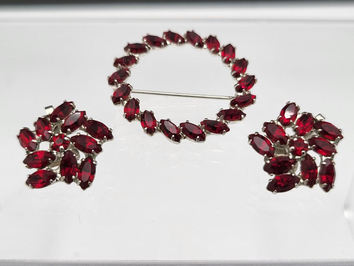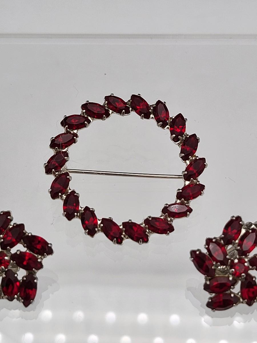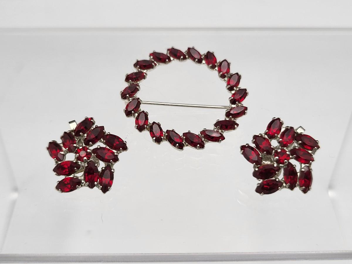 Deep Red Rhinestone B. DAVID Pin & Earring Set