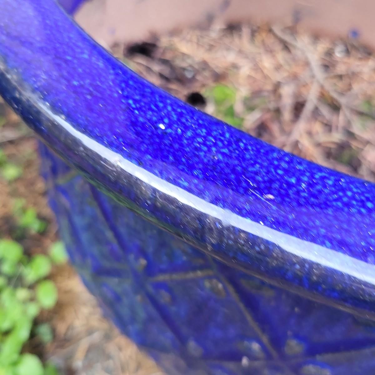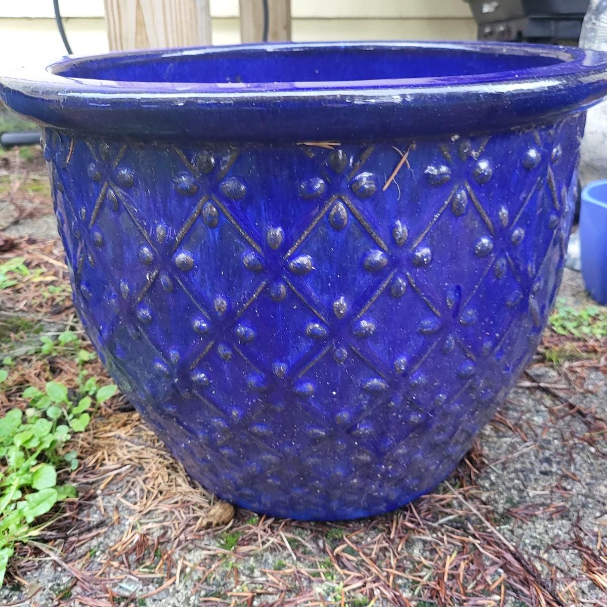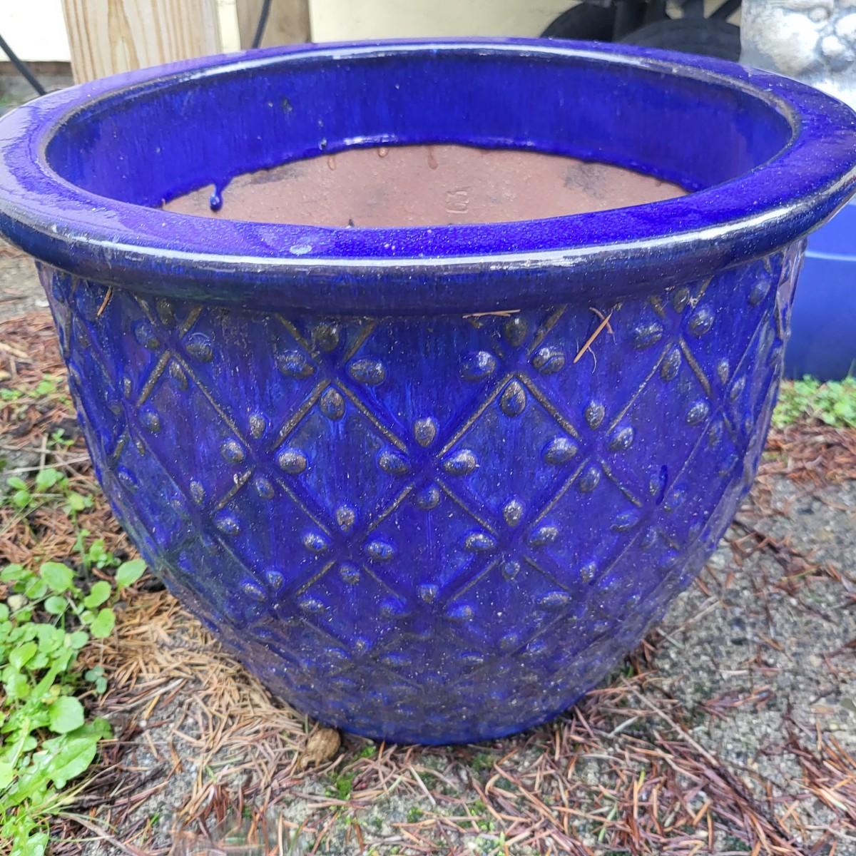 Textured pattern all-around, royal blue glazed outdoor pot/planter. 13" T x 14" W.