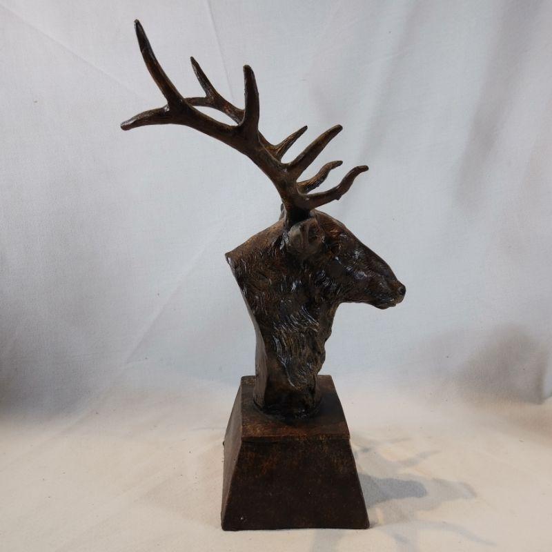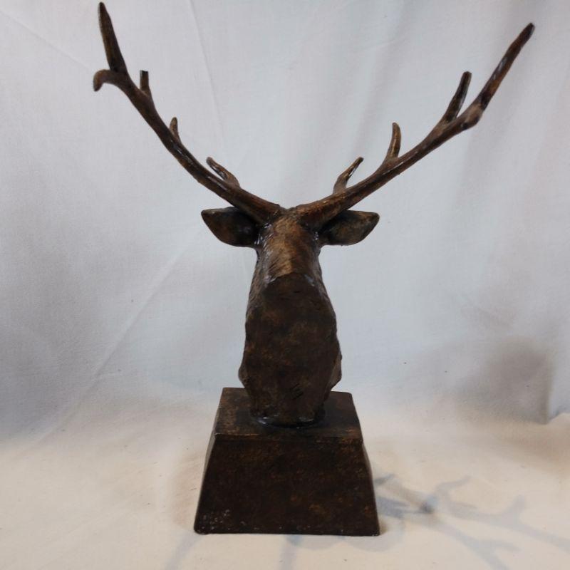 Decorator's bookshelf special. This is a very realistic looking deer head bust, made out of resin. Excellent to enhance any den. It is 8-1/4-inches wide X 12-inches tall. He is a very handsome Buck! He is too large to fit in a flat rate box - shipping could be expensive - bid accordingly!