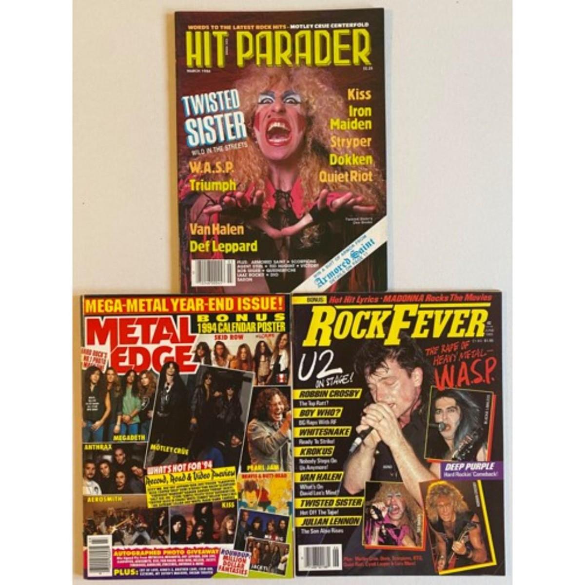 You get three magazines. One each of Hit Parader, Metal Edge, and Rock Fever. Overall, these are in good reading condition. The Motley Crue centerfold is not stapled, but is in good condition if you want to pin this up. Thank you for looking. As a reminder, if this is a lot, we do not break up lots. Also, all items are prepacked, so each item is sent individually. Any item that qualifies for media mail and weighs over one pound will be shipped via media mail. Otherwise, the item will be shipped USPS ground advantage, or UPS ground. Shipping for this item is $10.00. Items ship within two days after payment is received. Item SKU is MAG12.