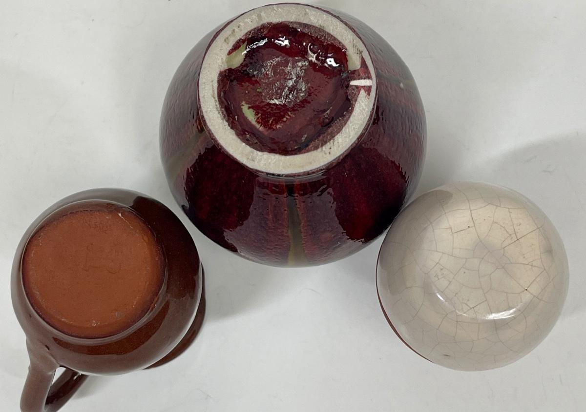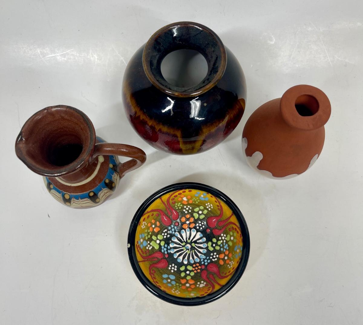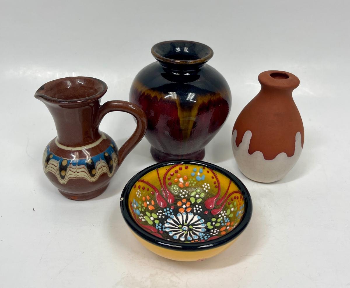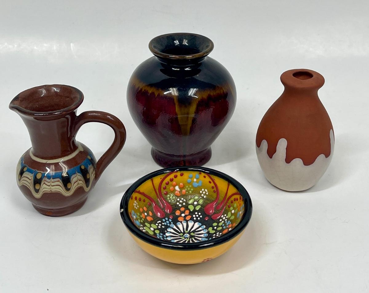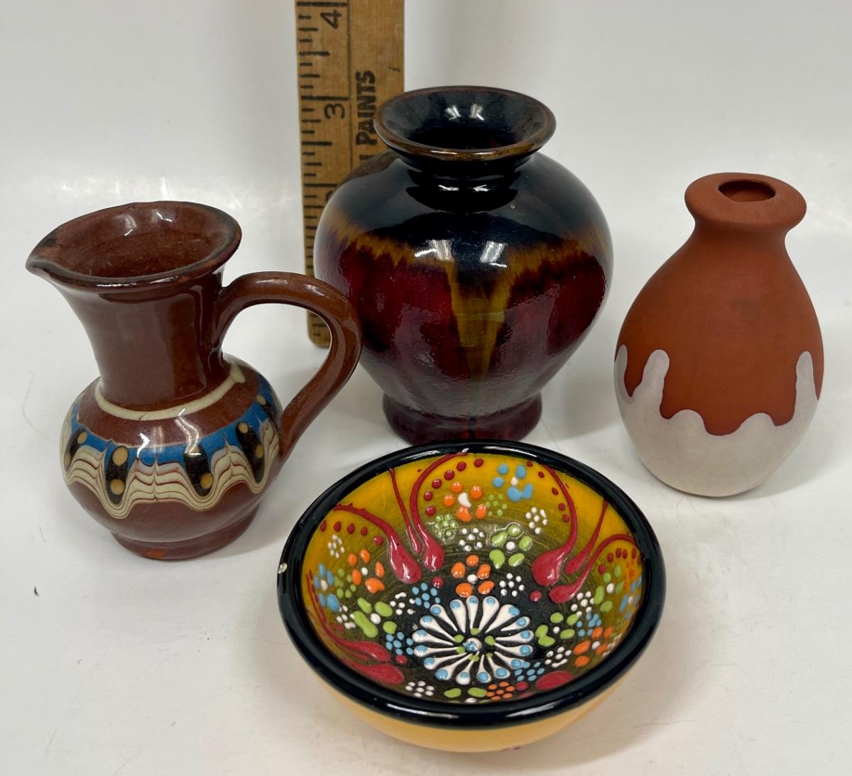 Colorful Mini Miniature Ceramic Pottery Lot - bowl, pitcher, 2 vases