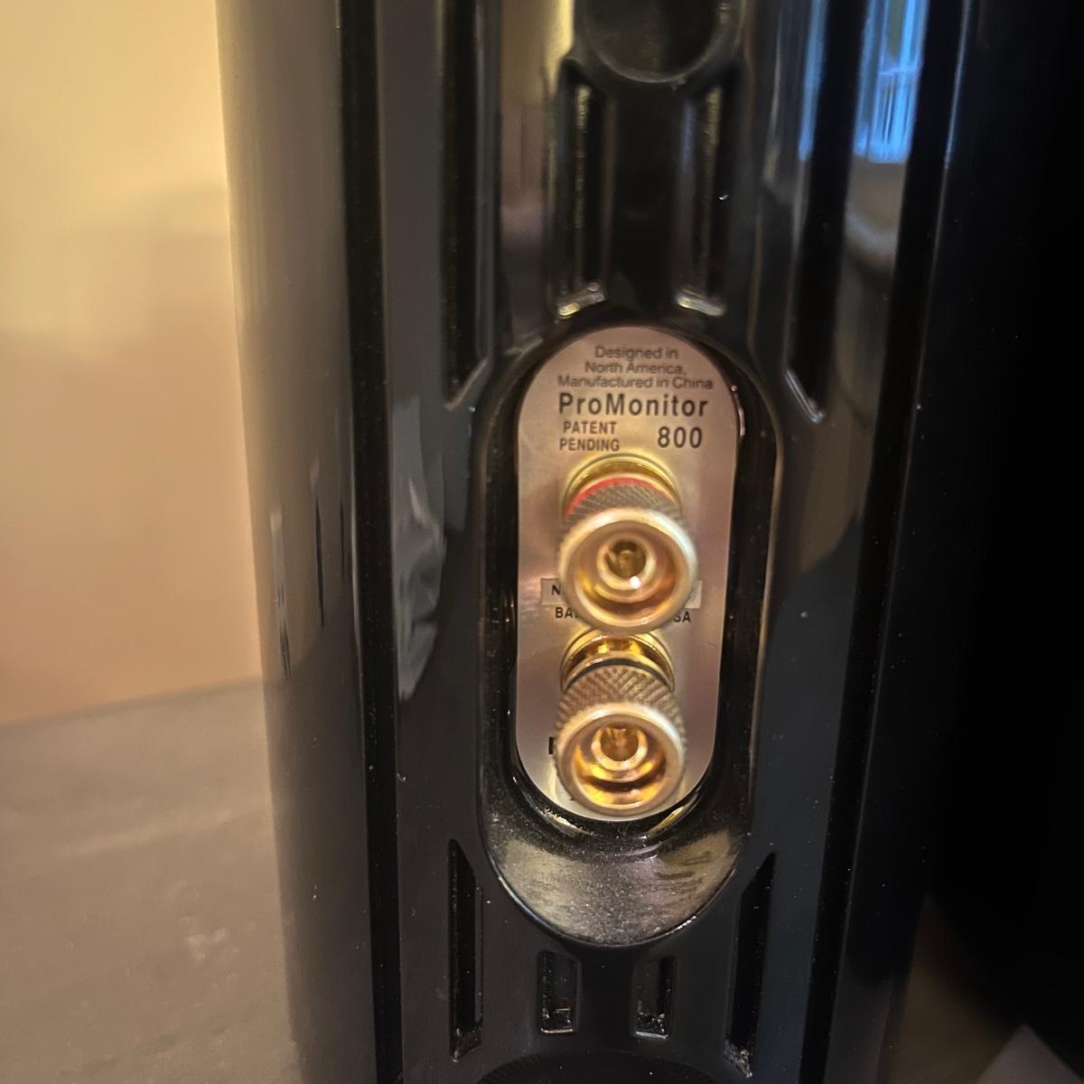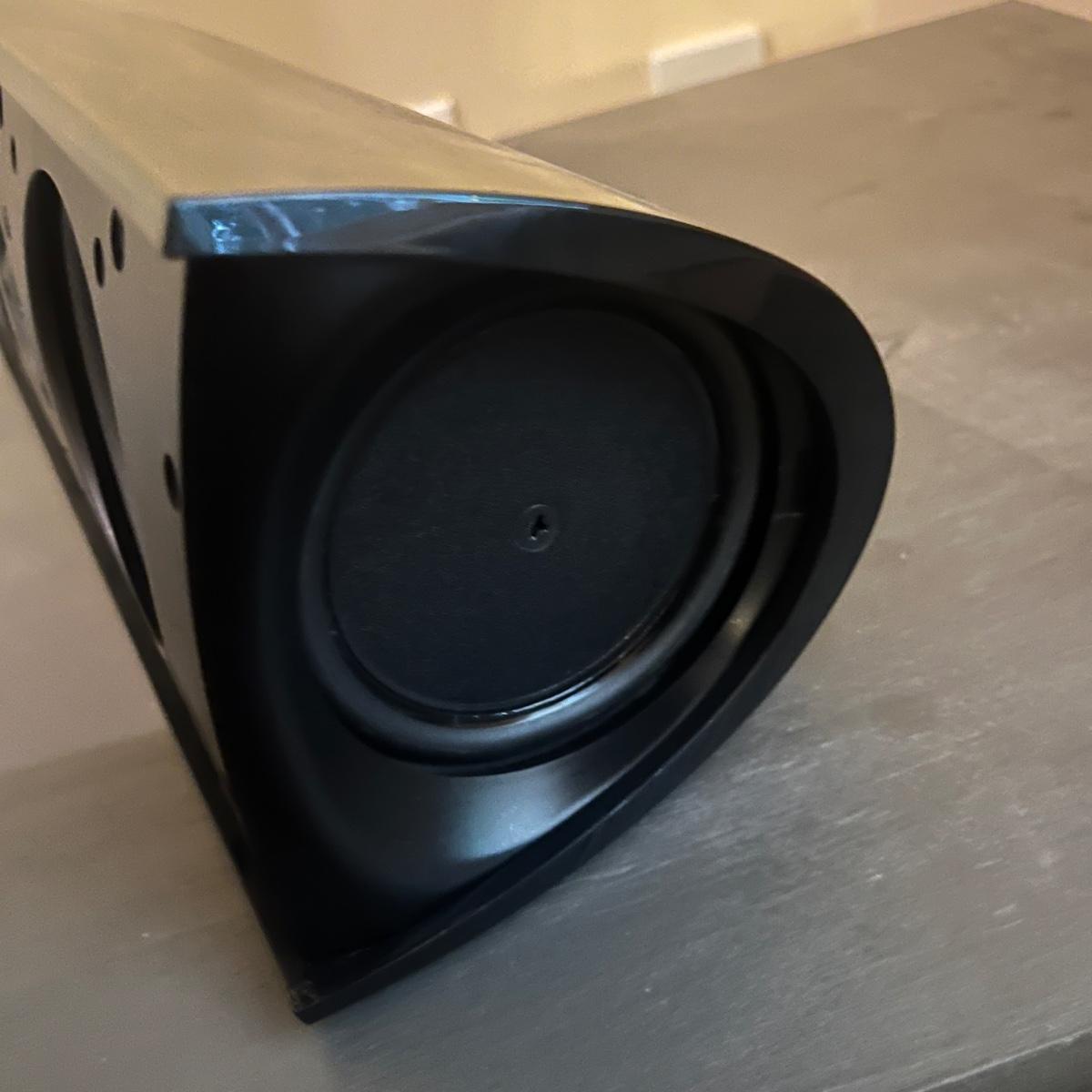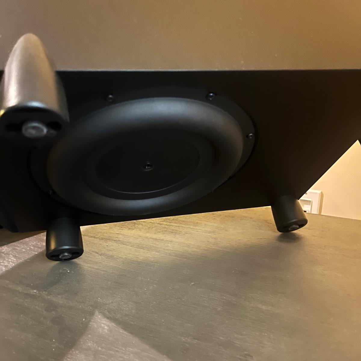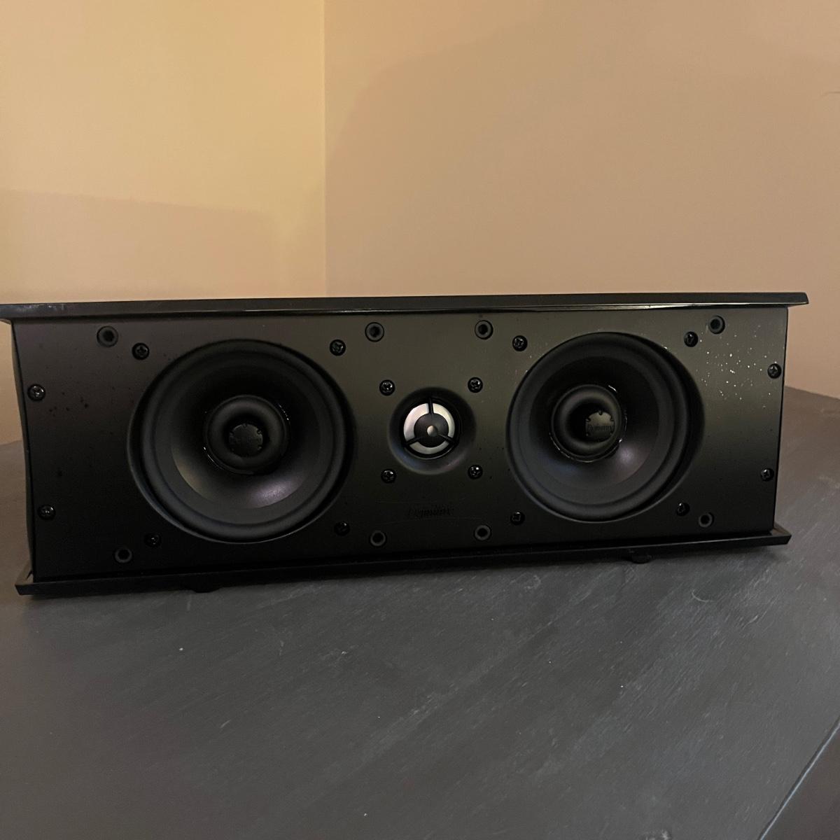 Lot includes a Definitive Pro Sub 800, Definitive Pro Center 1000 speaker and two Definitive Monitor 800 speakers. Sub powered on when plugged in. Sub measures 9.5” x 15” x 13”H.
