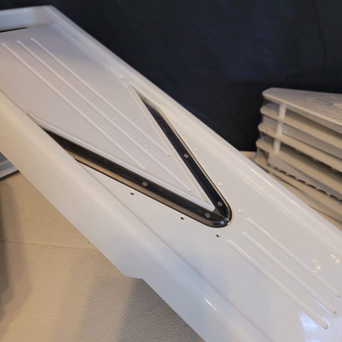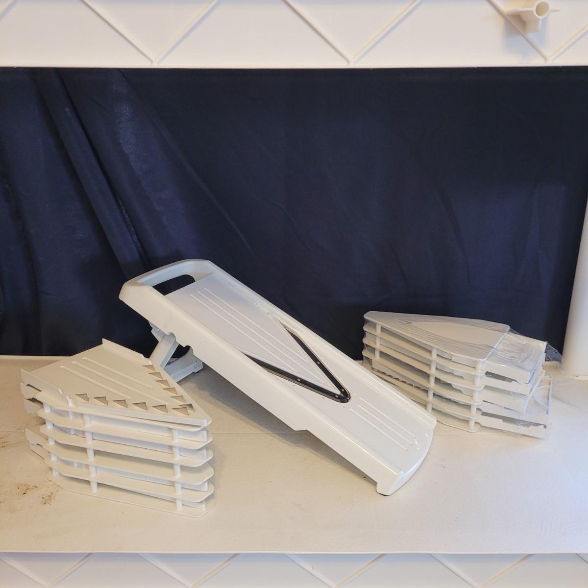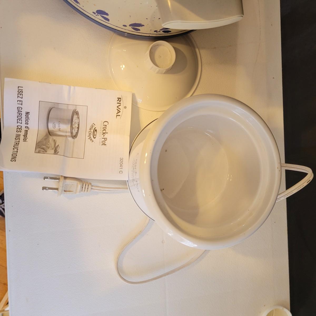 Included in this lot are two Rival crockpots, a food dehydrator with recipe book (appears to be new), mandolin with four blade attachments and a Super Kitchen Mixer which appears to be unused. Crockpots powered on when plugged in. Dehydrator measures approximately 13"DIA x 11"H.
