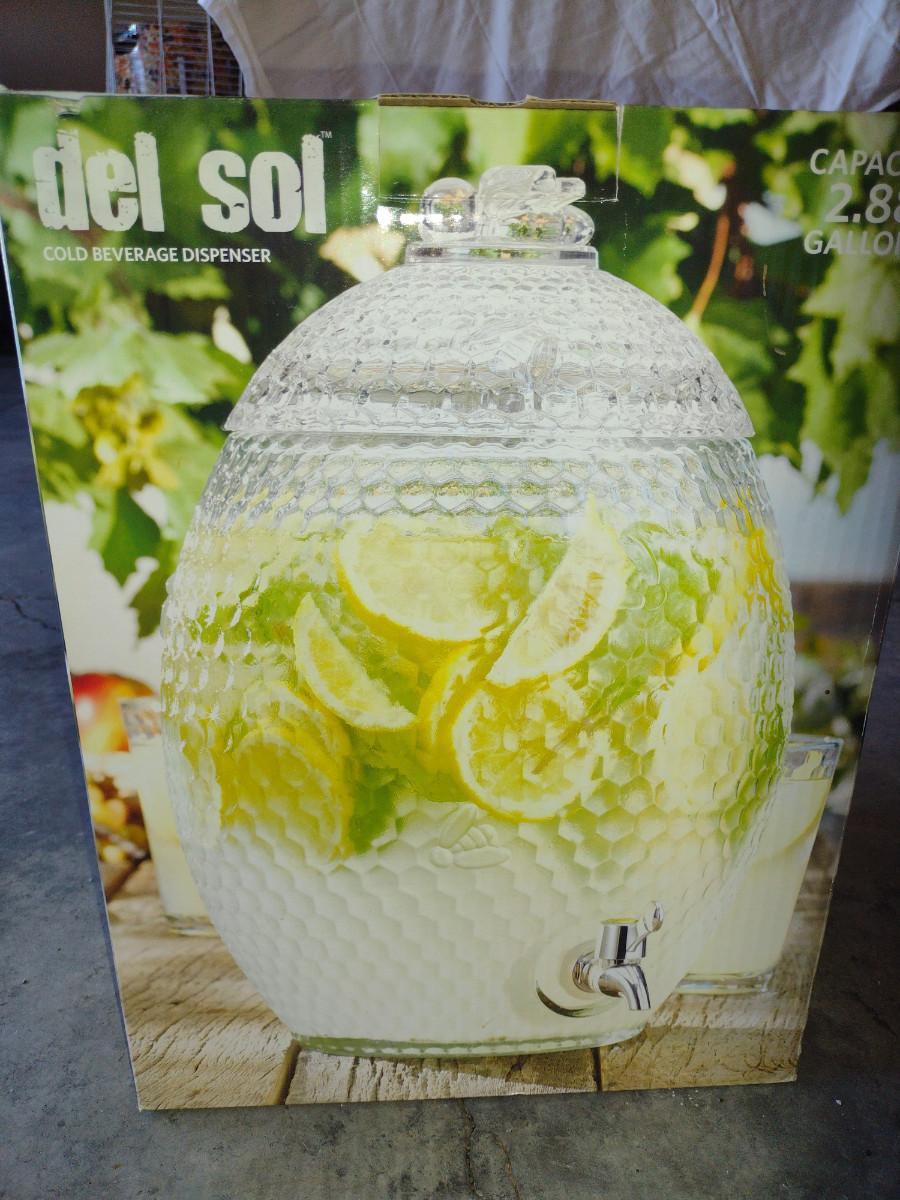 Del Sol Glass Beverage Dispenser with Spigot- 2.88 Gallon Capacity