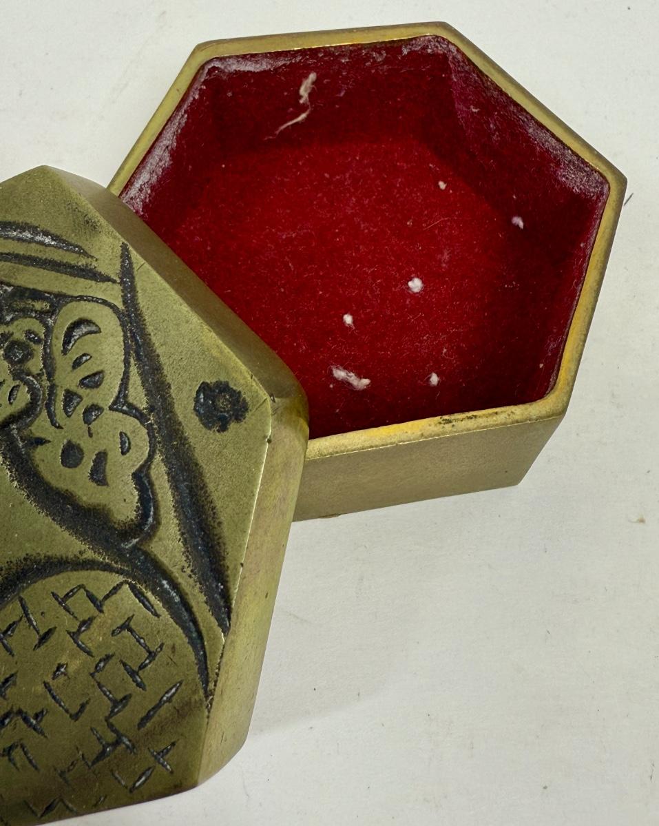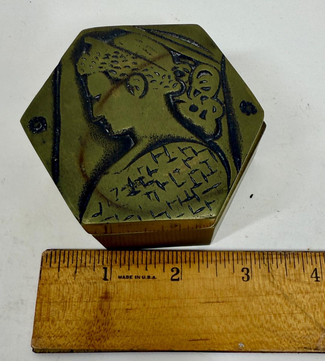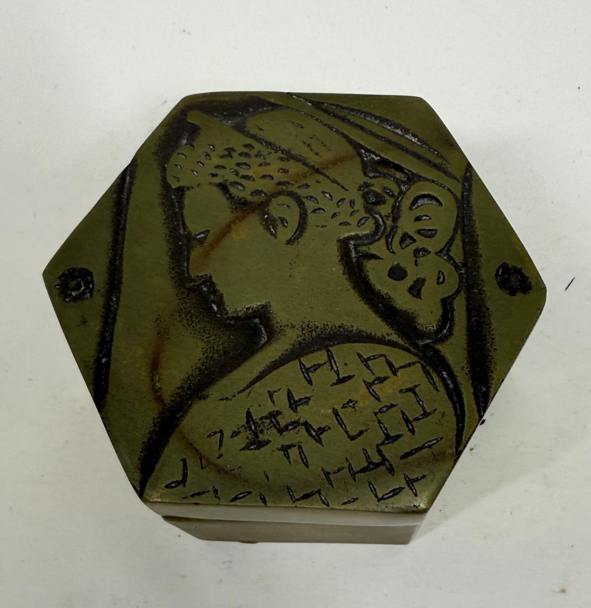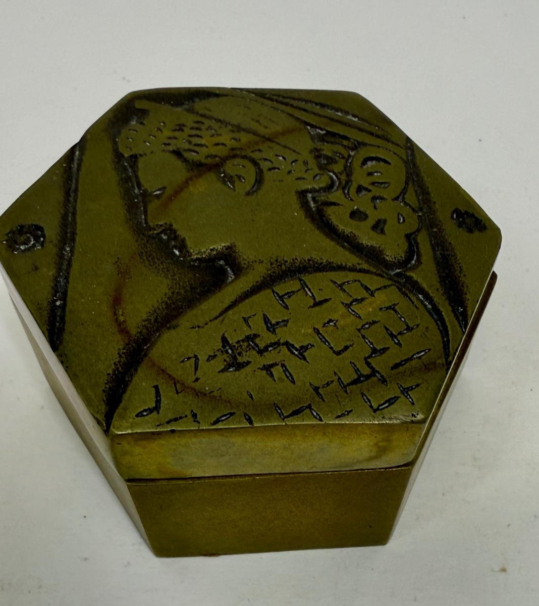 Delabre Art Portrait of a Woman Bronze Jewelry Trinket Hexagonal Shaped