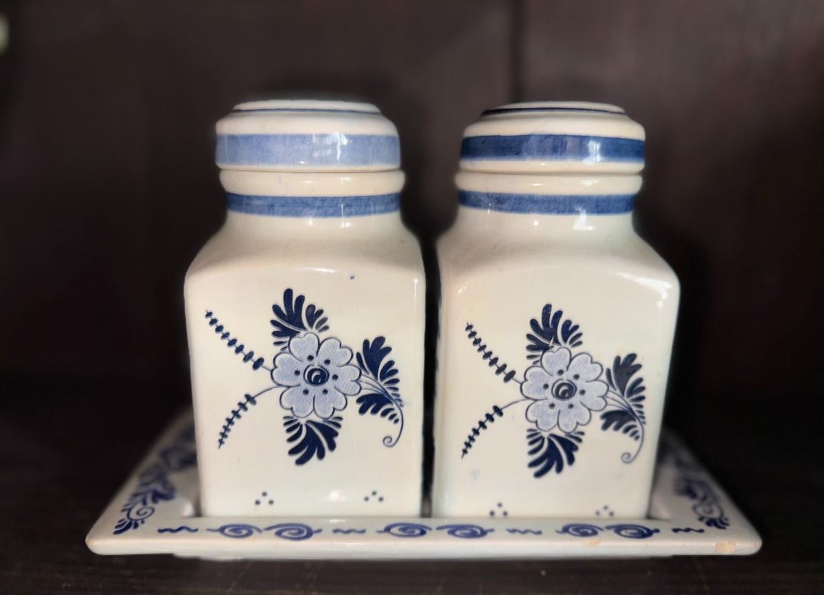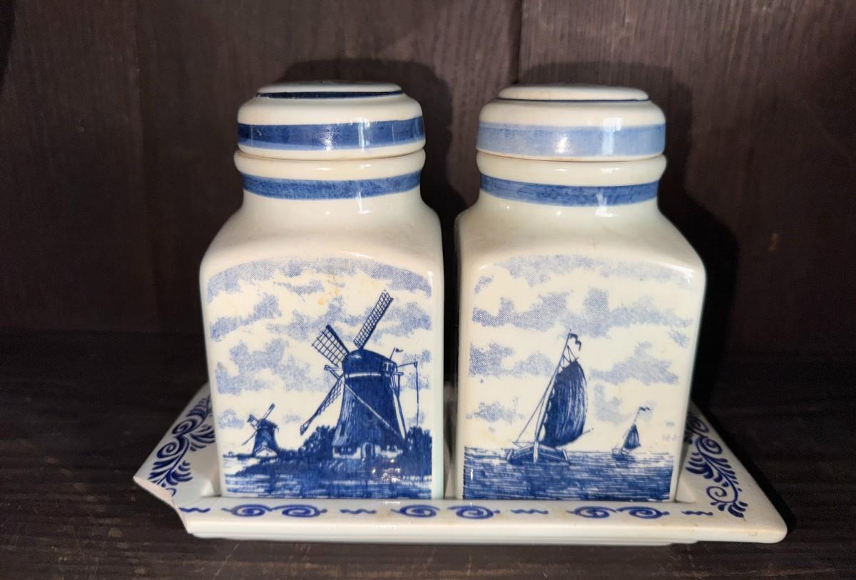 Delft Blauw Hand Painted 5.5" Lidded Canisters with Underplate