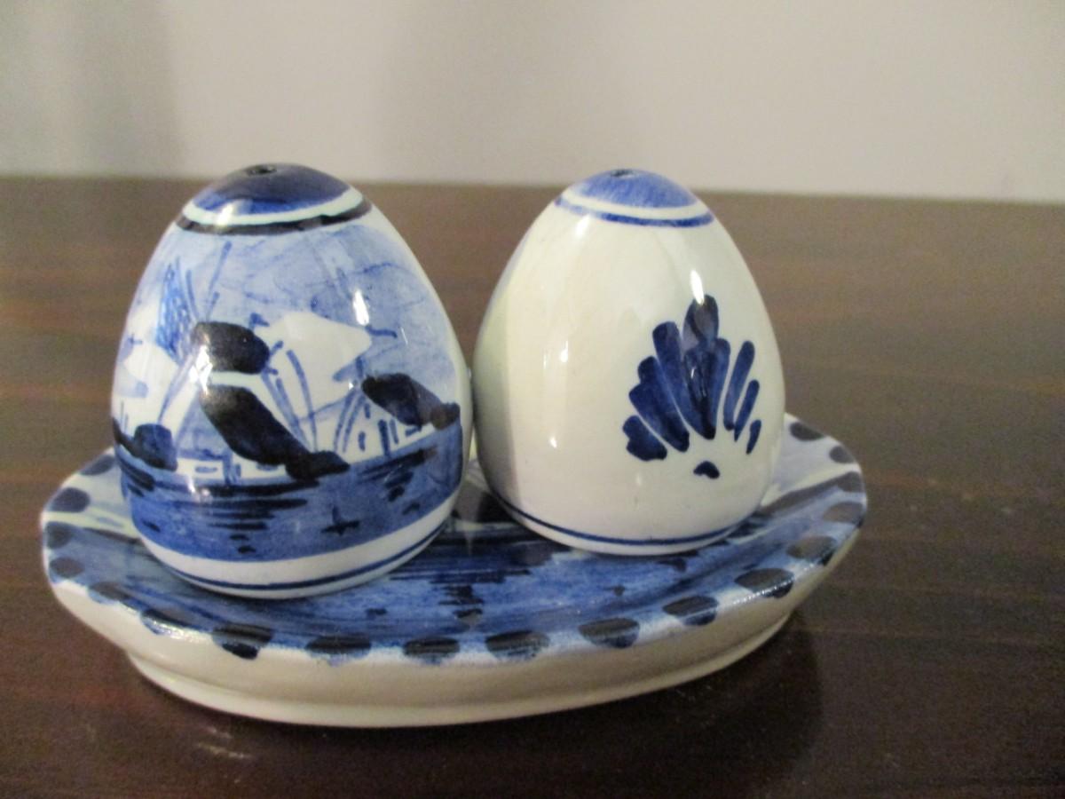 Delft Blue Holland Windmill Collection Oval Tray, Salt & Pepper Shaker,