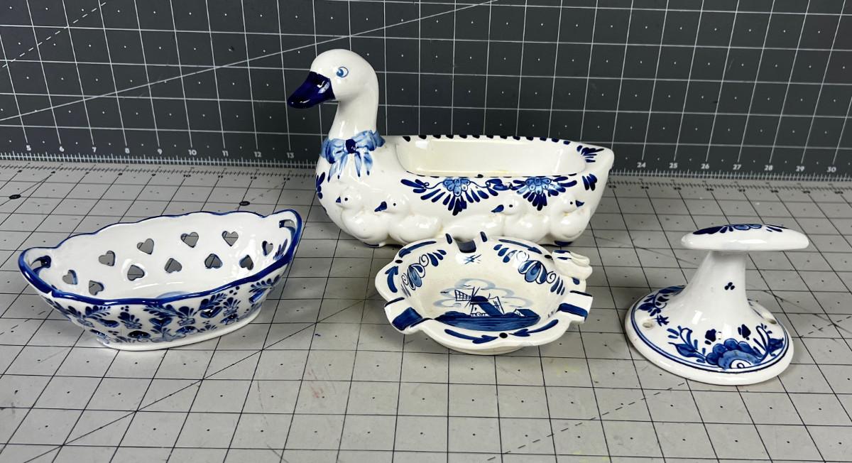 Delft Blue Mixed lot: Ash Tray, Wall Hook, Soap Dish