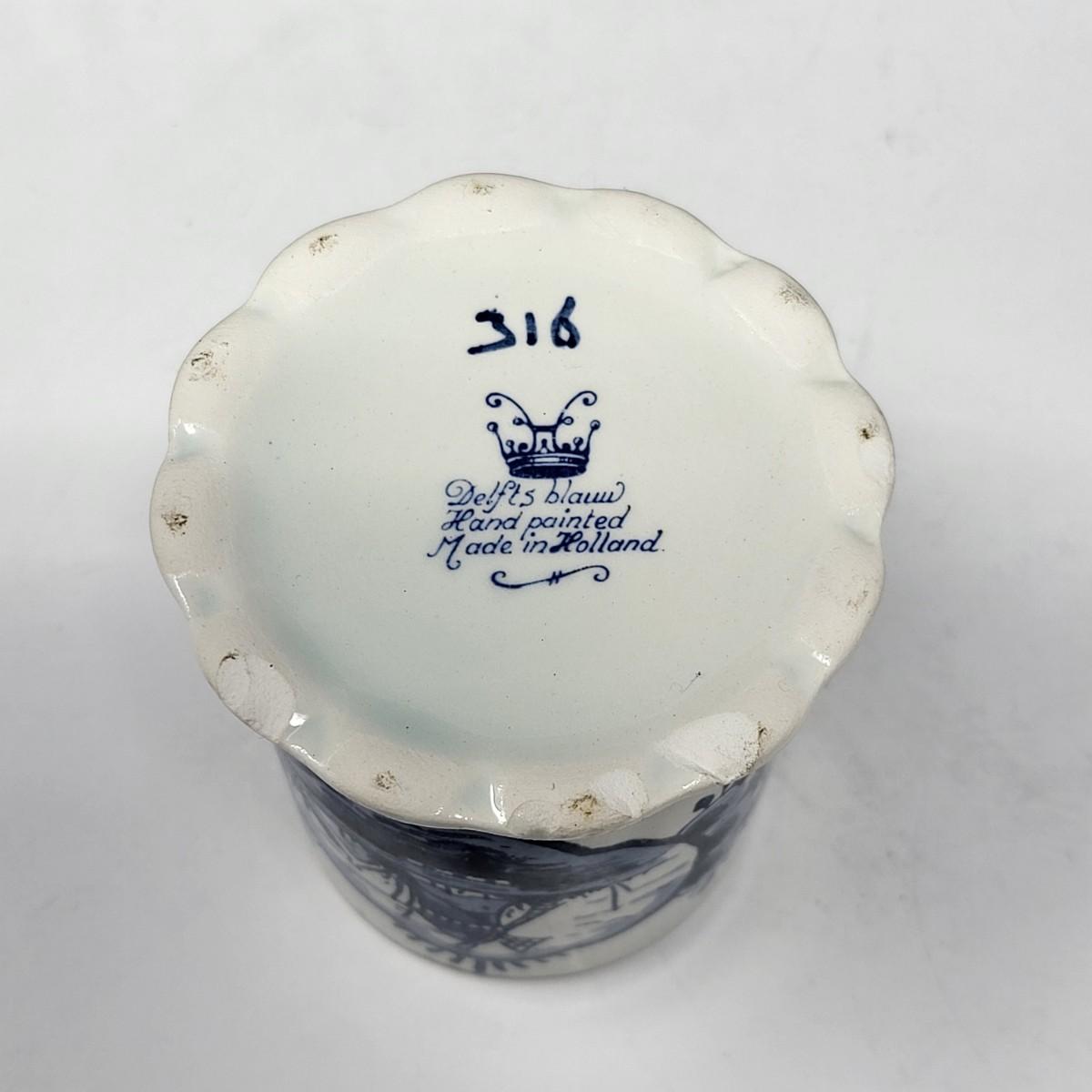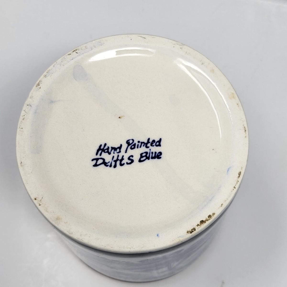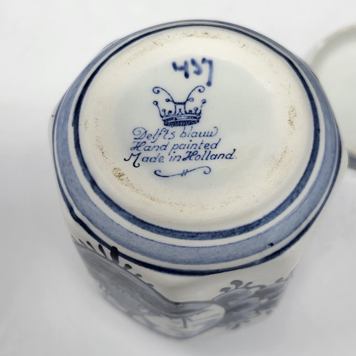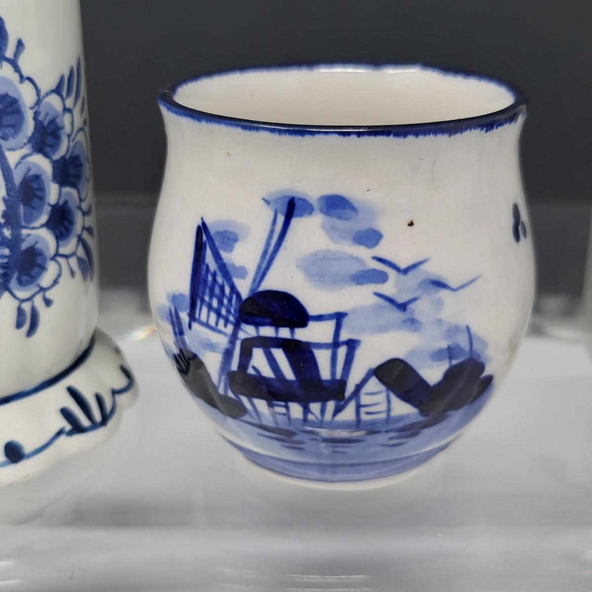 Collection of 8 Delf Holland various decor pieces. Trinket boxes, lidded canister, mini pitcher, small ginger jar, a bell and more.