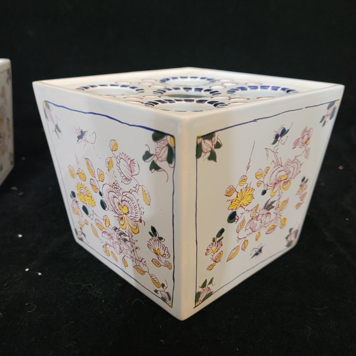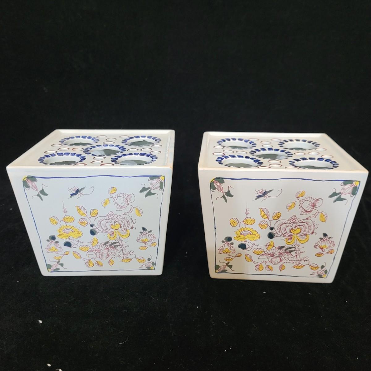 Delft Colonial Williamsburg Floral Frog Vases (DR-CE)