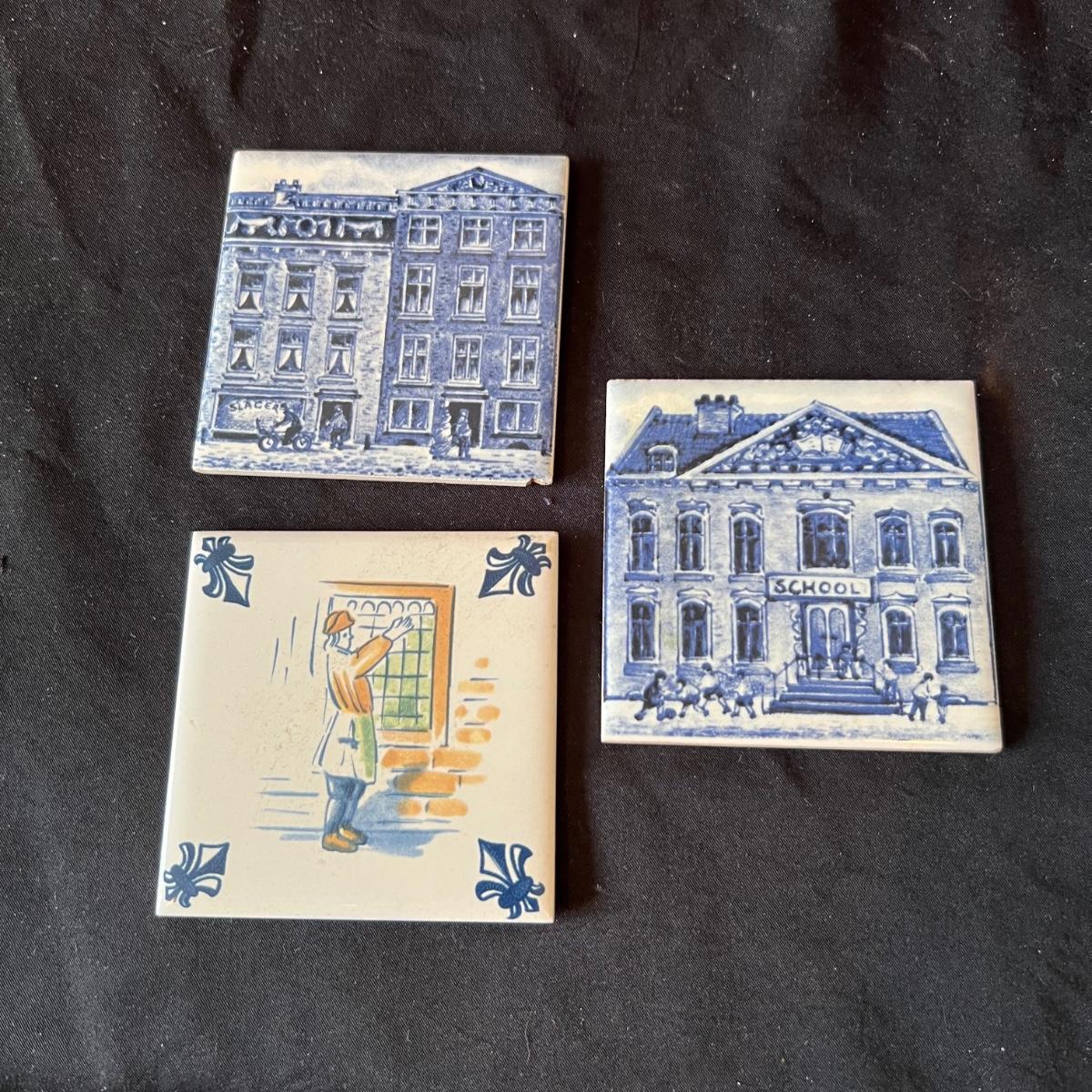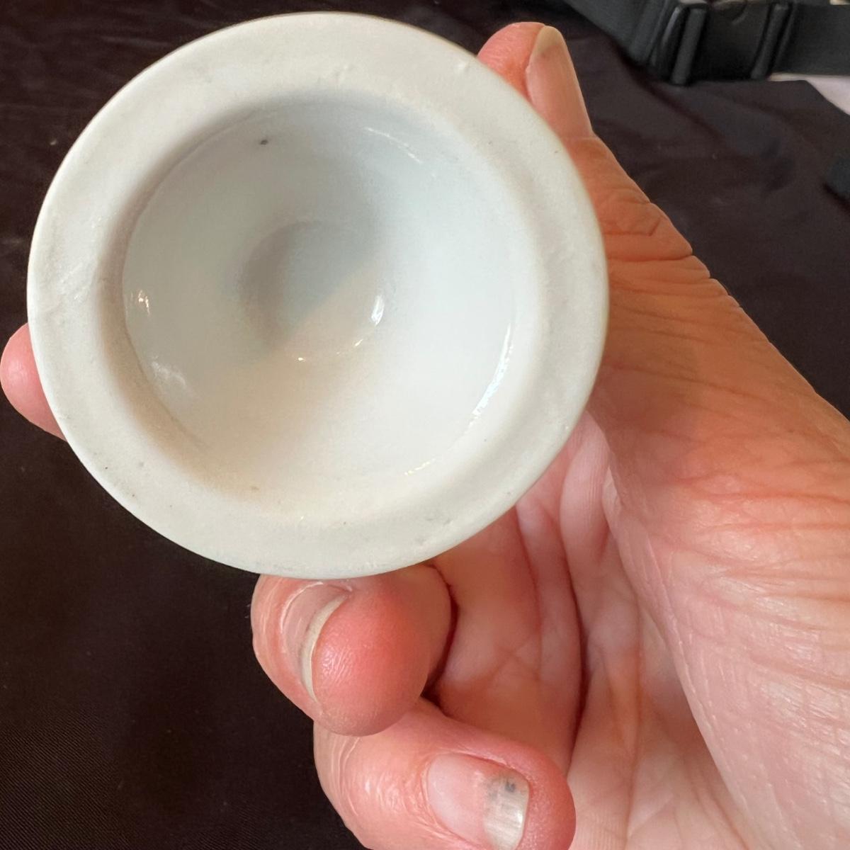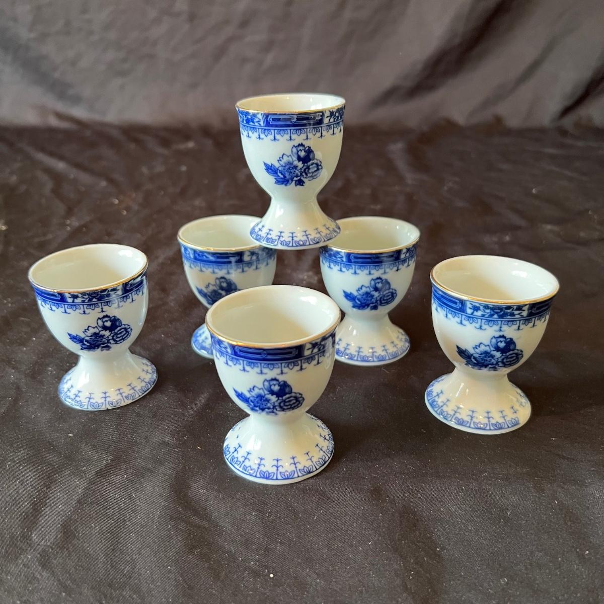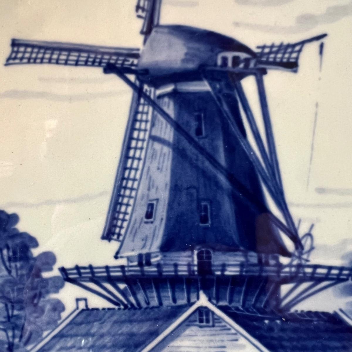 The large Delft plate measures 13”D, it is signed and hand painted. We have paired more blue and white china that includes an elephant teapot, six egg cups and three KLM coasters.