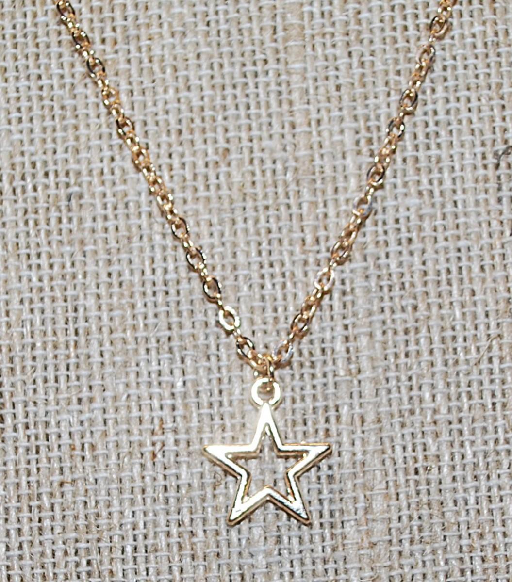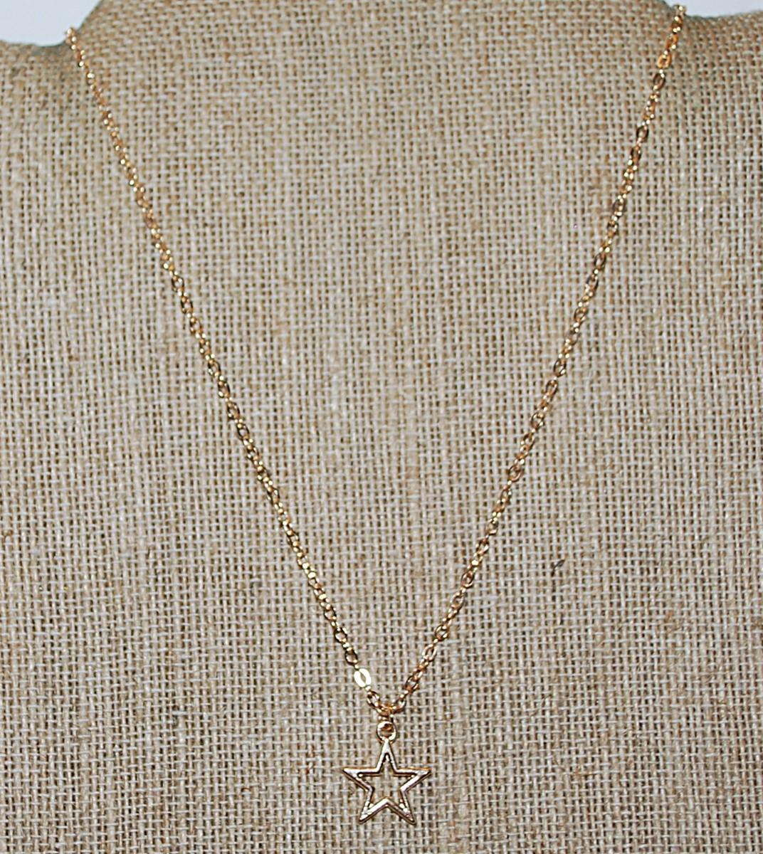 Delicate 5-Point STAR NECKLACE with Gold Tone Chain & Lobster Clasp 15" L