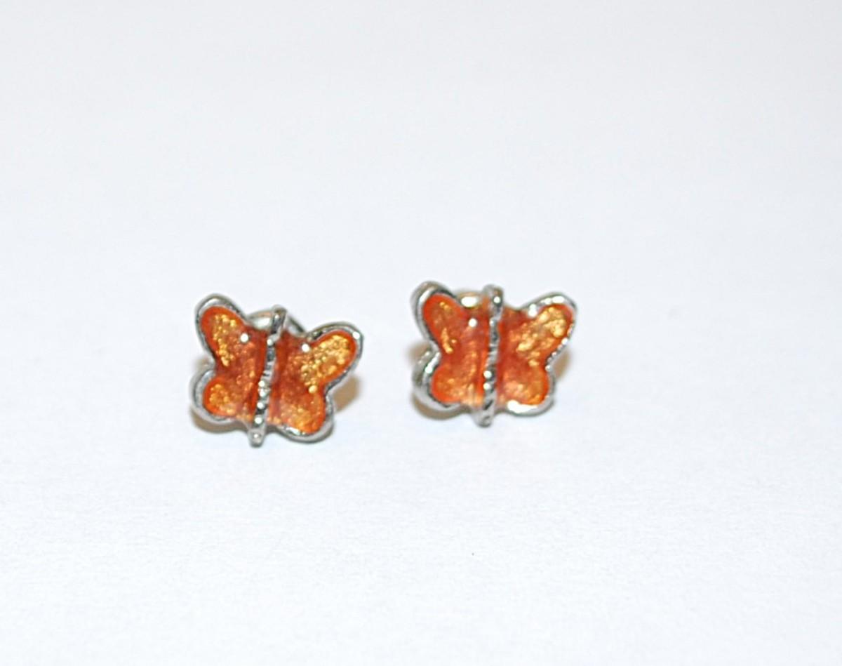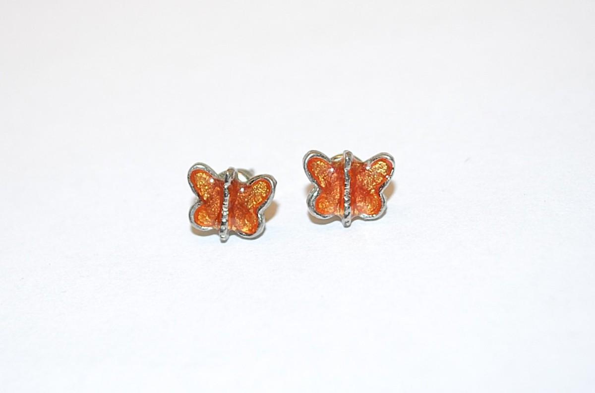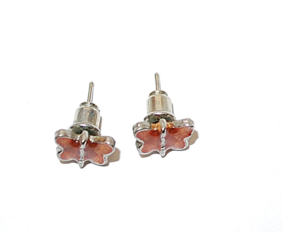 Delicate Amber-Orange Enamel Butterfly EARRING Set with Stud Post Clasp