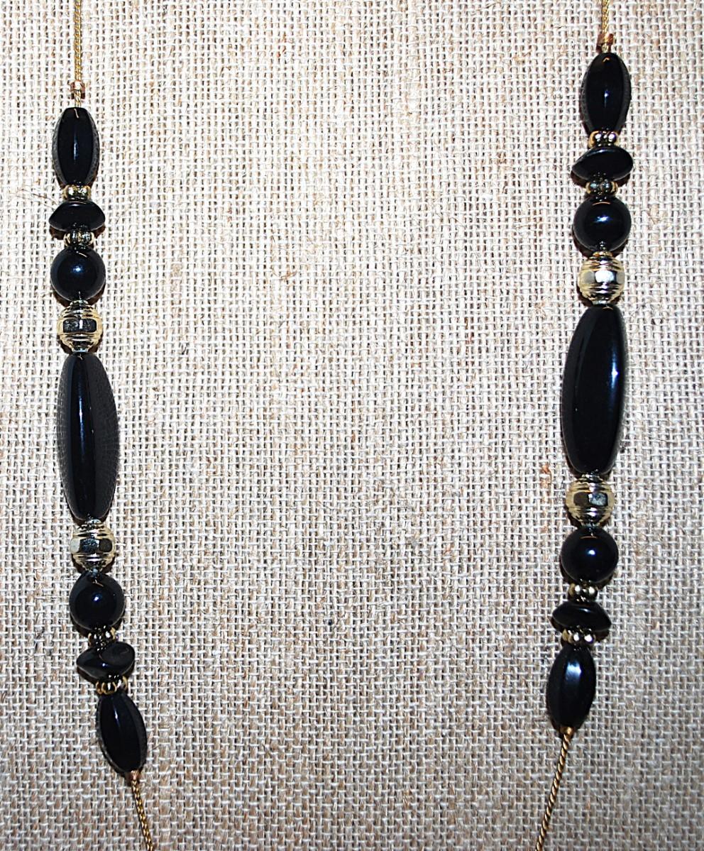 Delicate Gold Chain NECKLACE with Black & Gold Beads 30" L