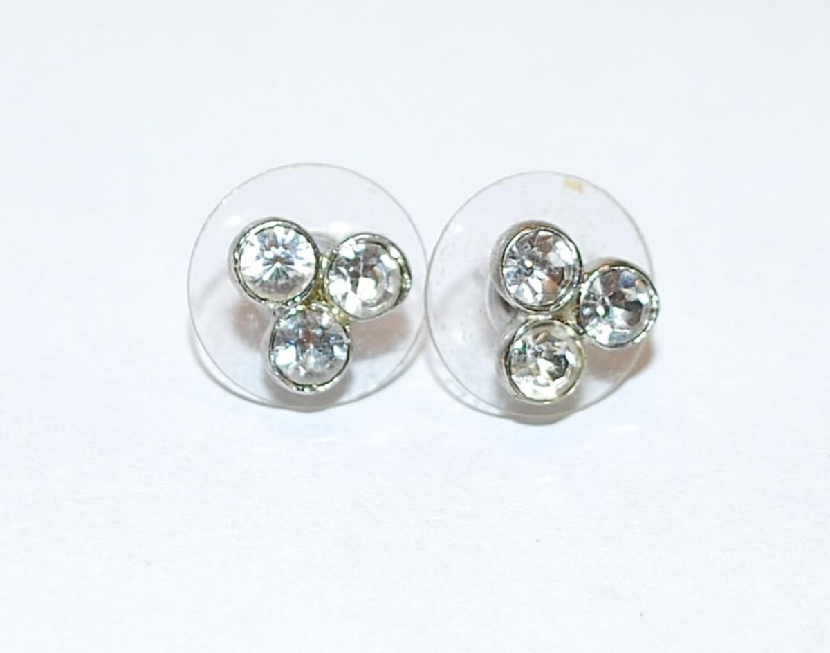 Delicate Triple Round Clear Stones EARRING Set with Stud Post Clasp