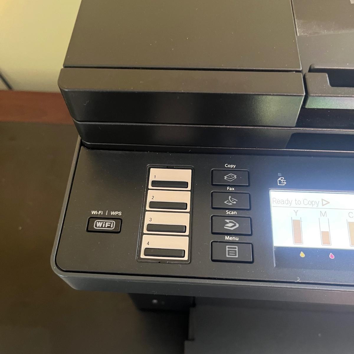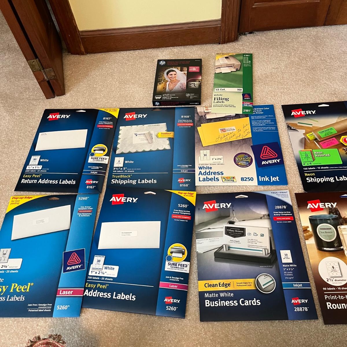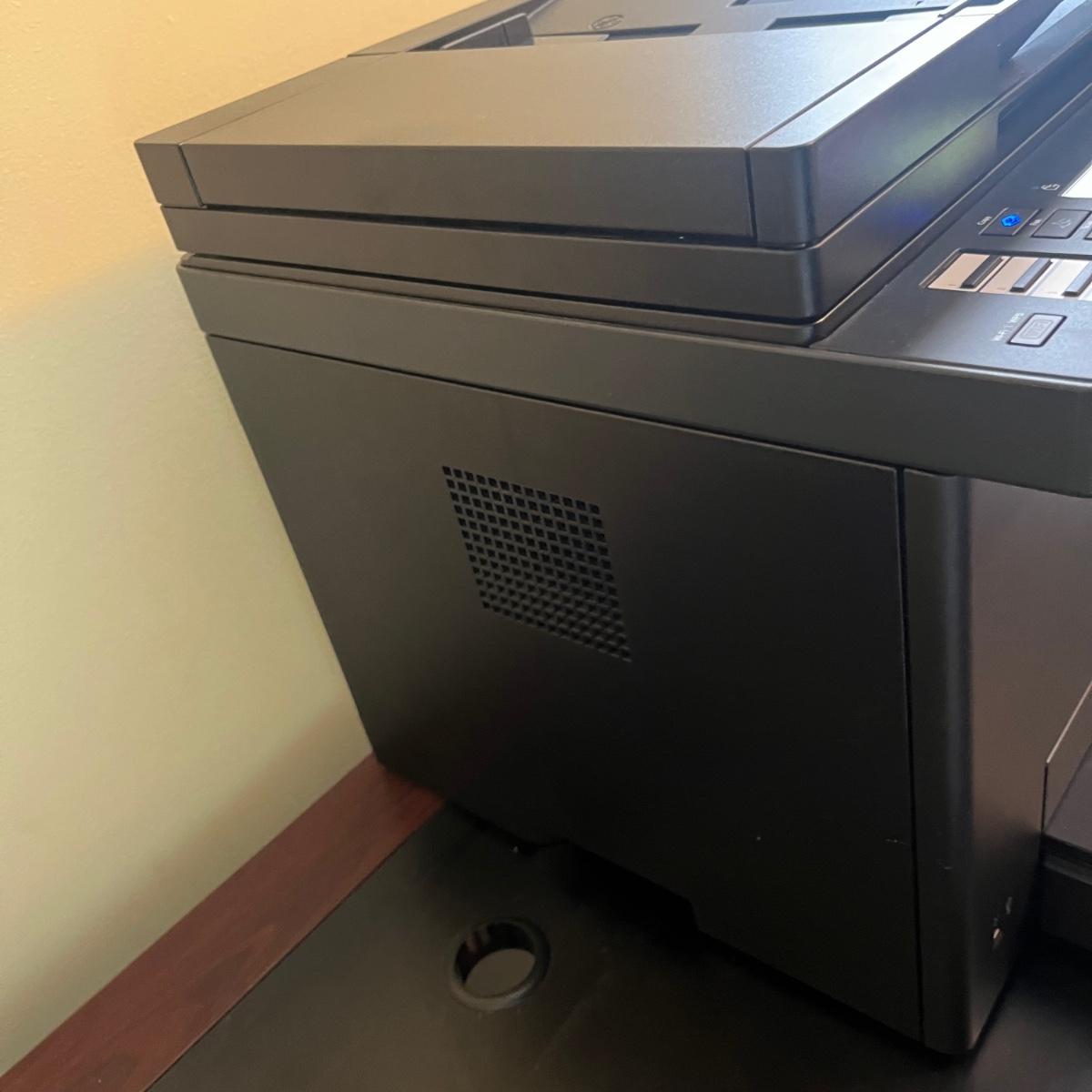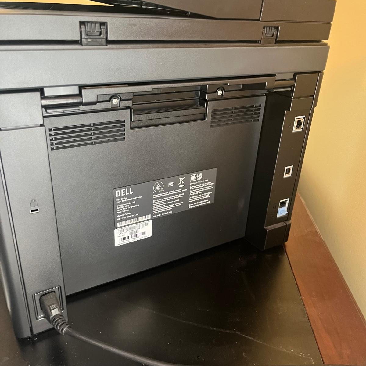 Lot includes a Dell all in one color laser printer with toner cartridges and specialty paper. Printer powered on when plugged in. Printer measures 16” x 17” x 15”H.