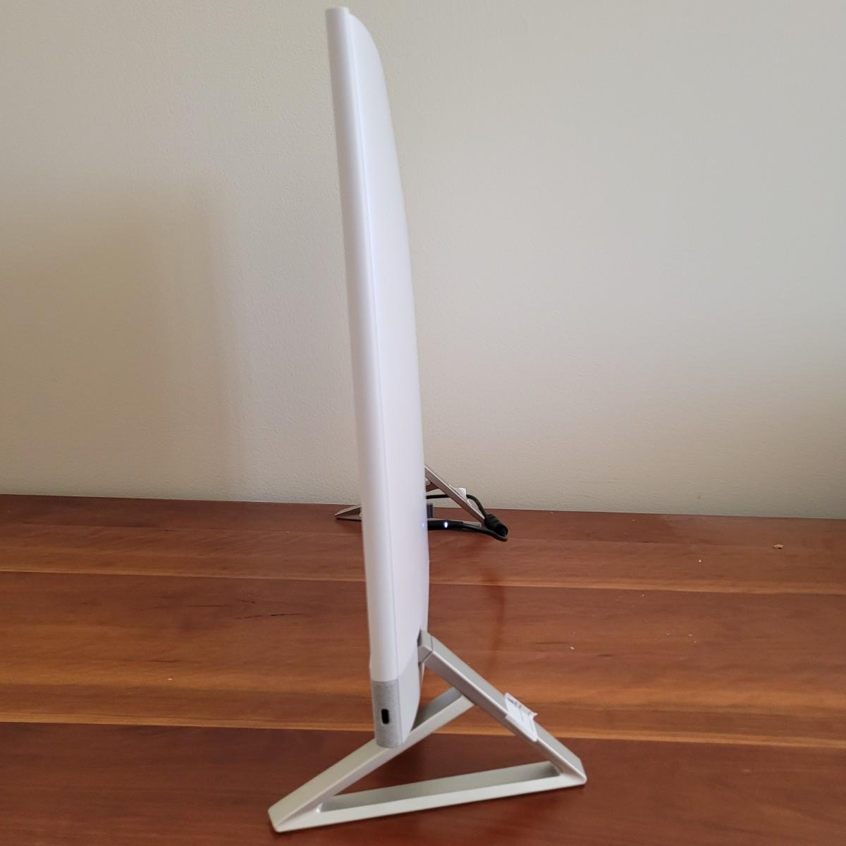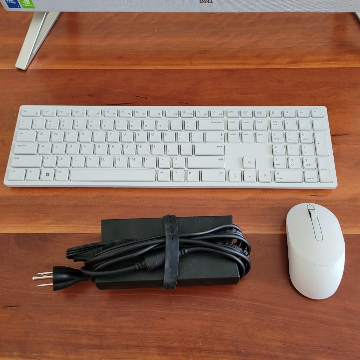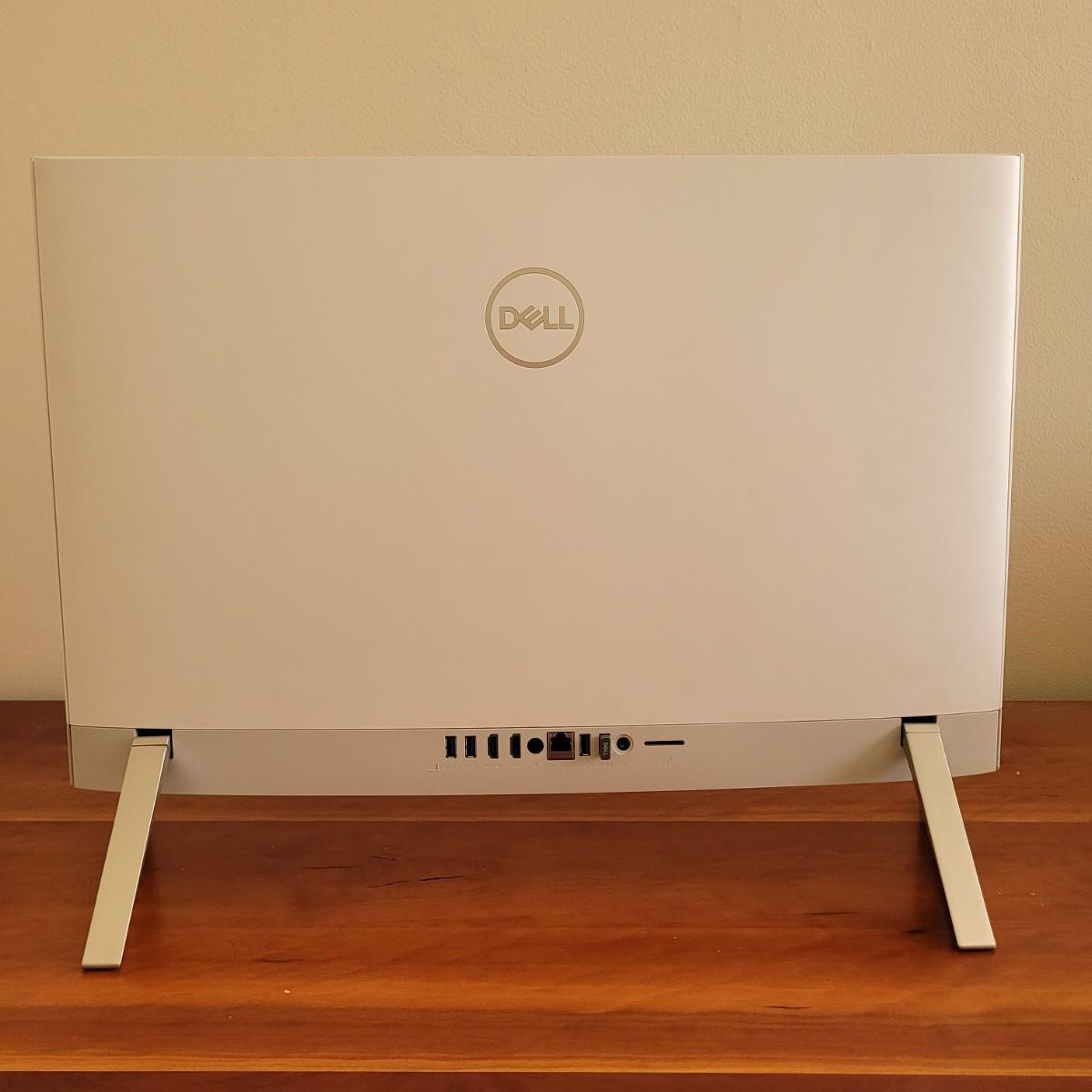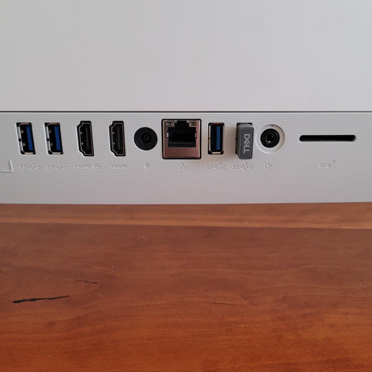 This lot includes a Dell Inspiron 7730 All-In-One desktop PC with a wireless keyboard and mouse. This PC runs on Windows 11 and features an Intel core 7 processor and dedicated NVIDIA graphics card. The screen is a 27" touchscreen and has dual Dolby 5w speakers. The device's hard drive is wiped and the computer powered on when plugged in. Power cord, wireless keyboard, and mouse are included. The PC measures 24" x 9"(base) x 18"H.
