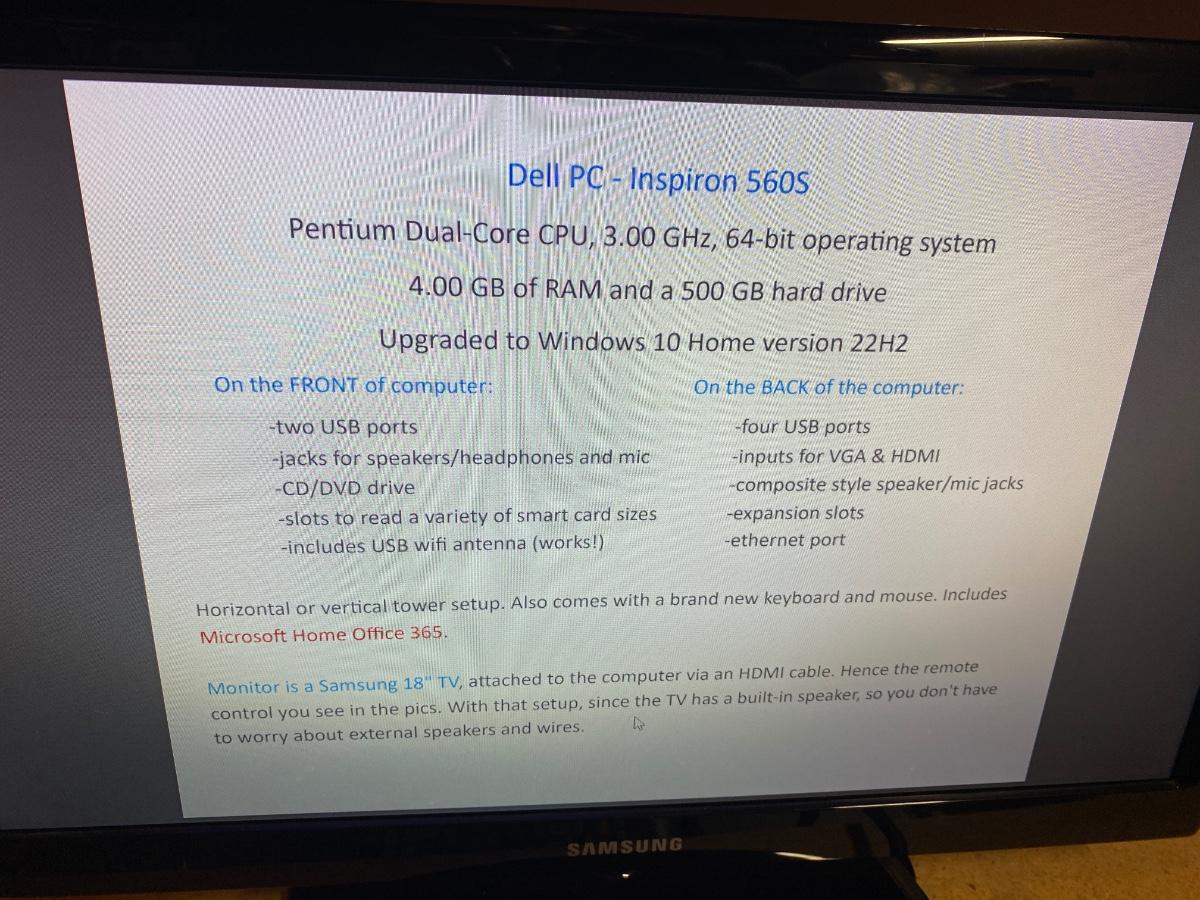 DELL INSPIRON PC 5605 W/WINDOWS 10 AND MS OFFICE 365 (SEE PHOTOS FOR DETAILS)