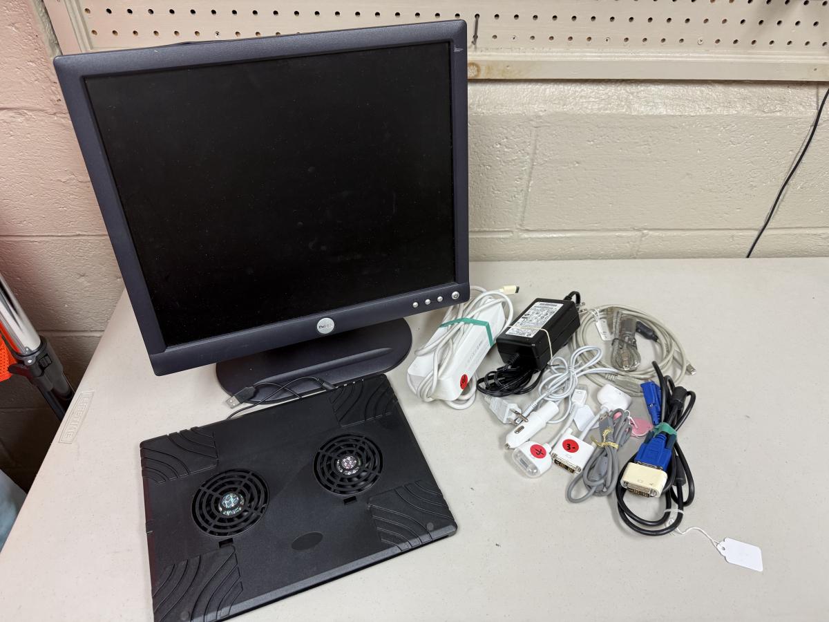 Dell monitor, computer cables & adapters, laptop fan,