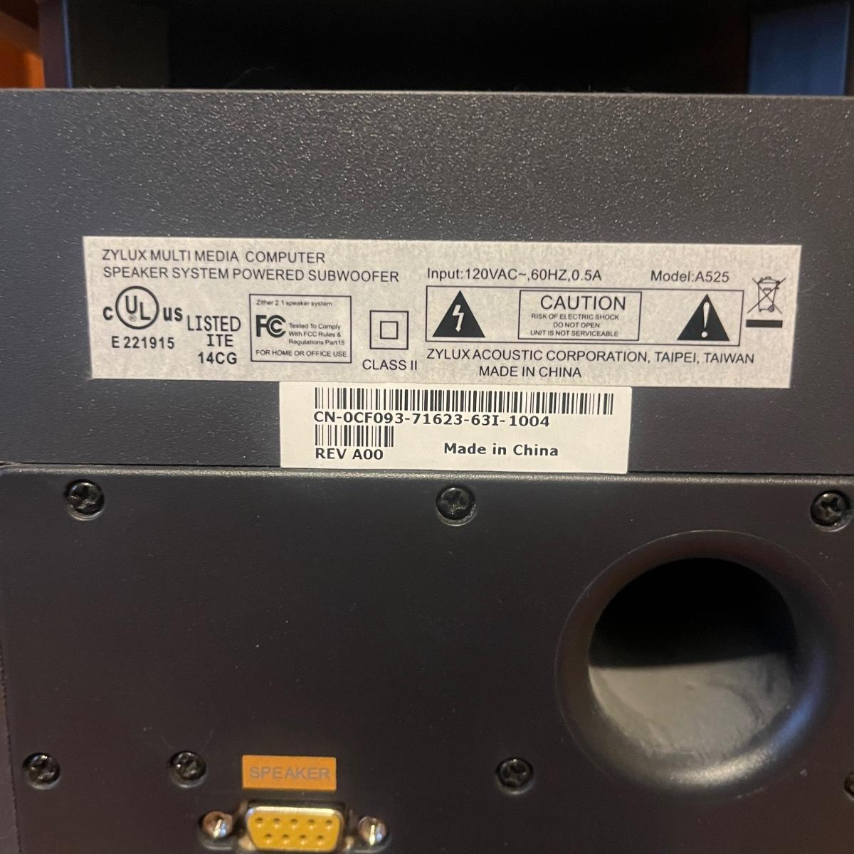 Lot includes a Dell powered subwoofer with a pair of speakers. Subwoofer measures 8” x 8” x 8”H. Subwoofer and speakers were not tested.