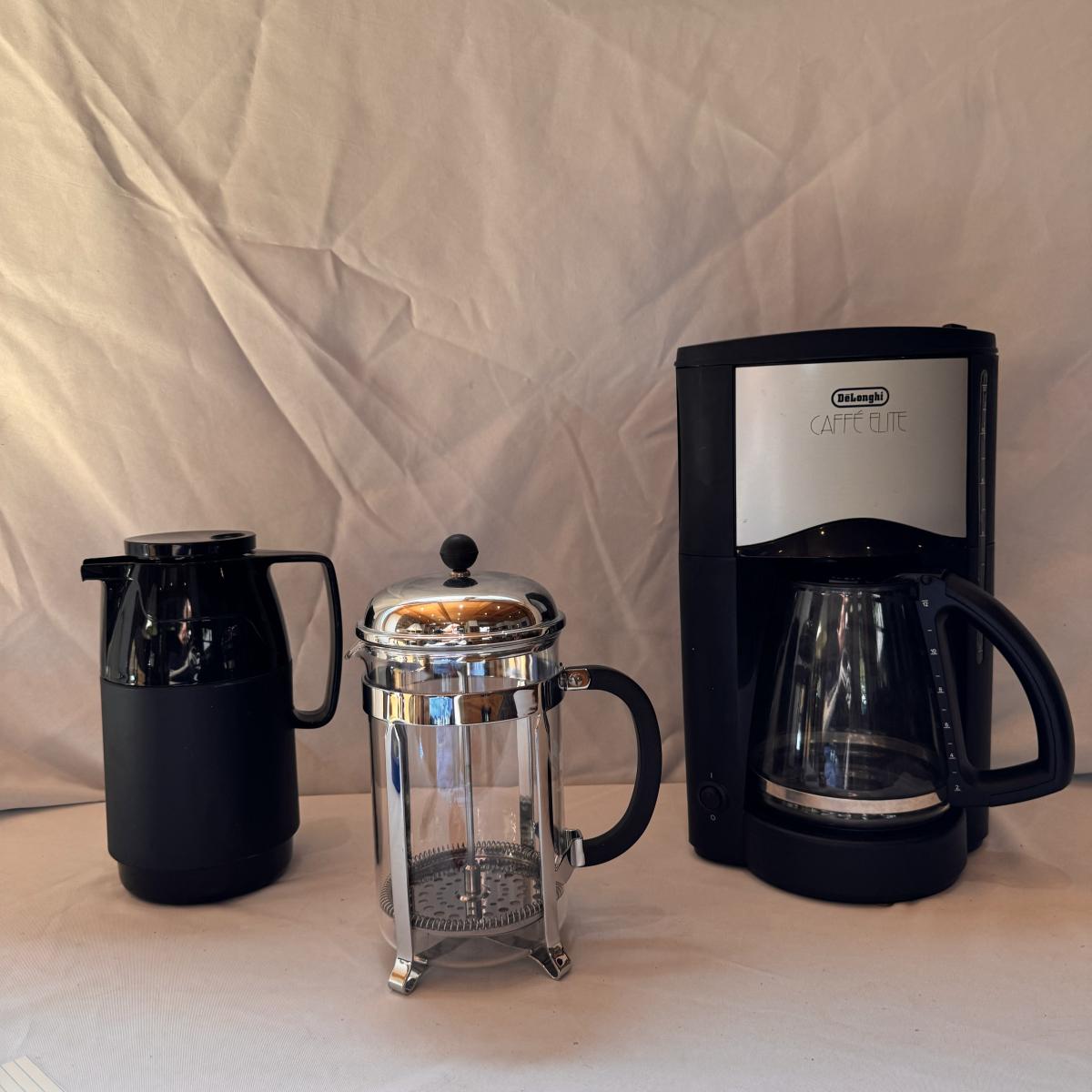 DeLonghi Caffe Elite Coffee Maker, Mr. Coffee Thermal Carafe, and a French Press (K-DZ)