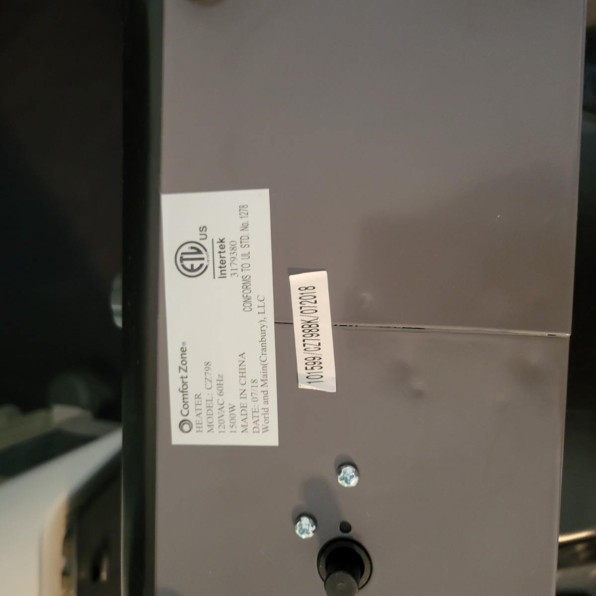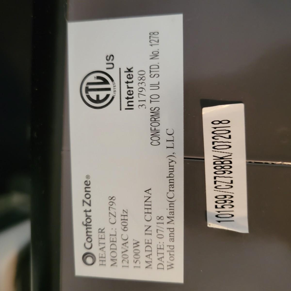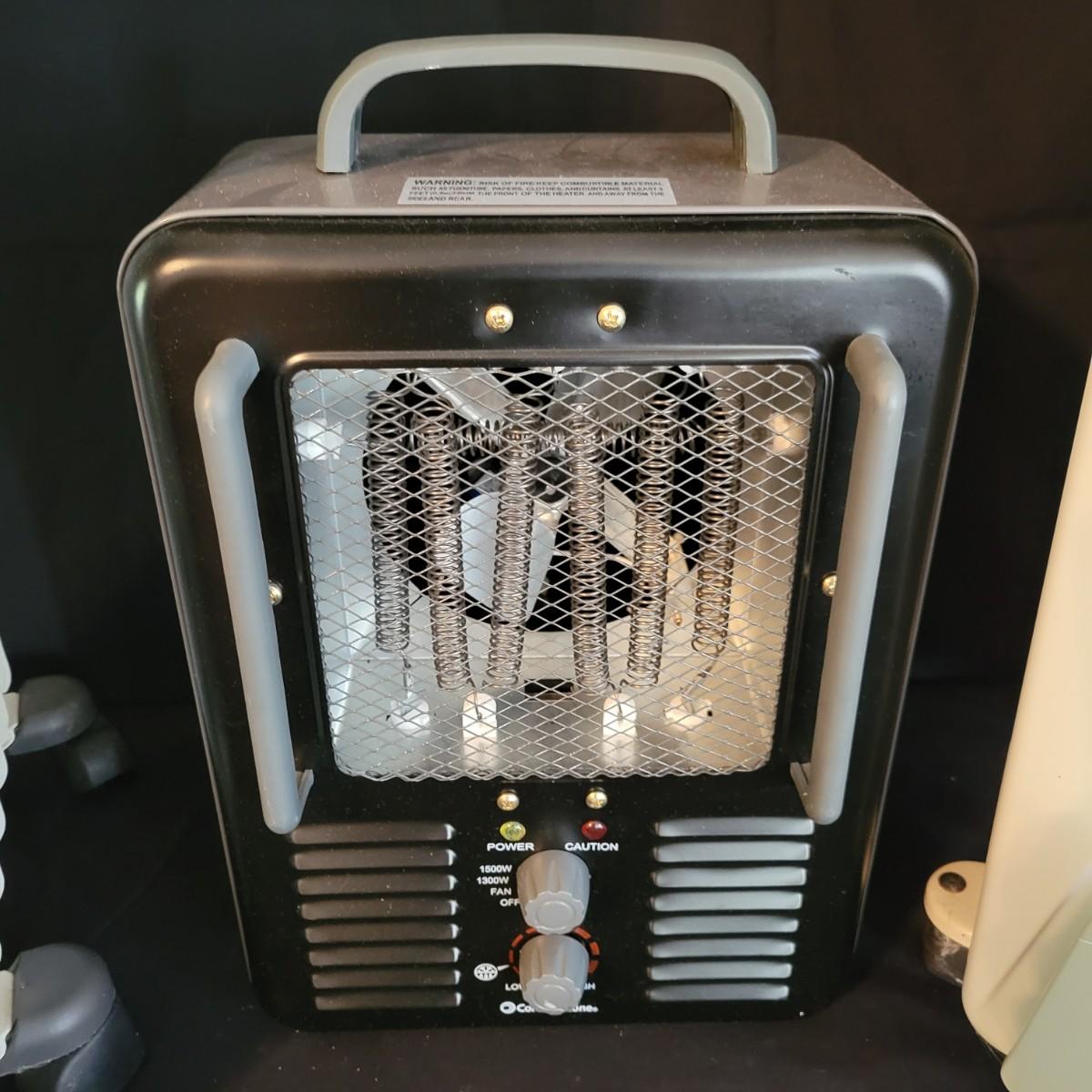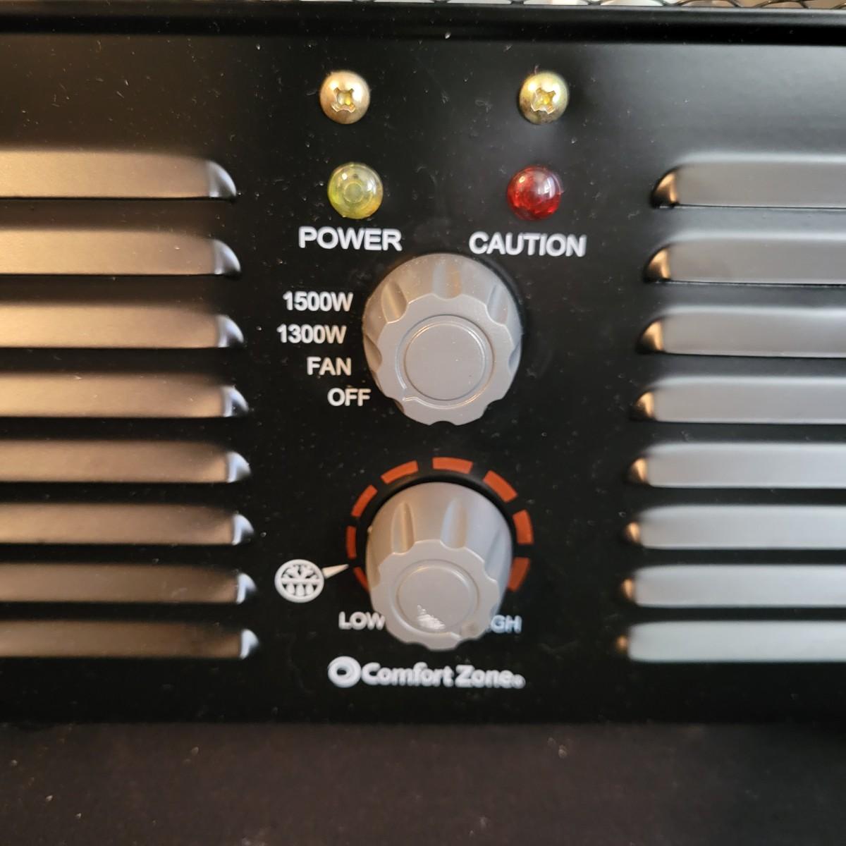 A group of three heaters that powered on when plugged in. Included are two DeLonghi oil heaters that measure approximately 9" x 14" x 25". Also includes a Comfort Zone 1500W heater with a fan. Local pickup only