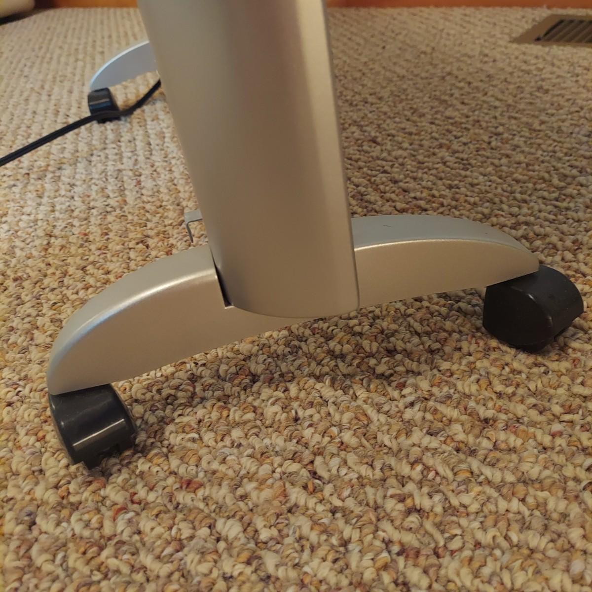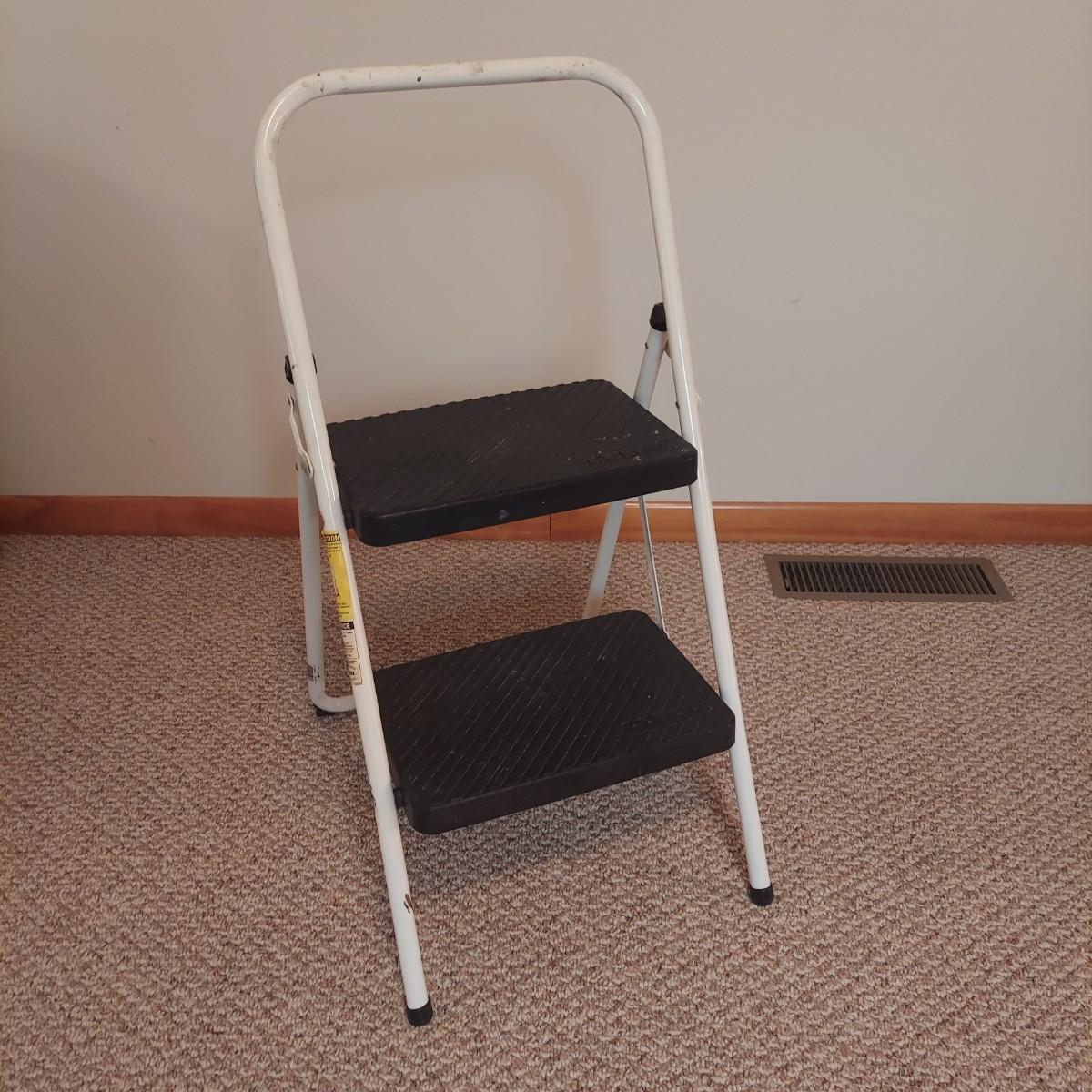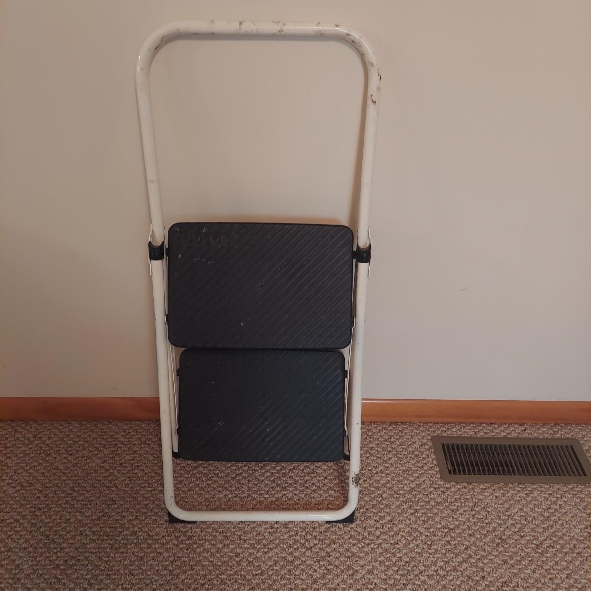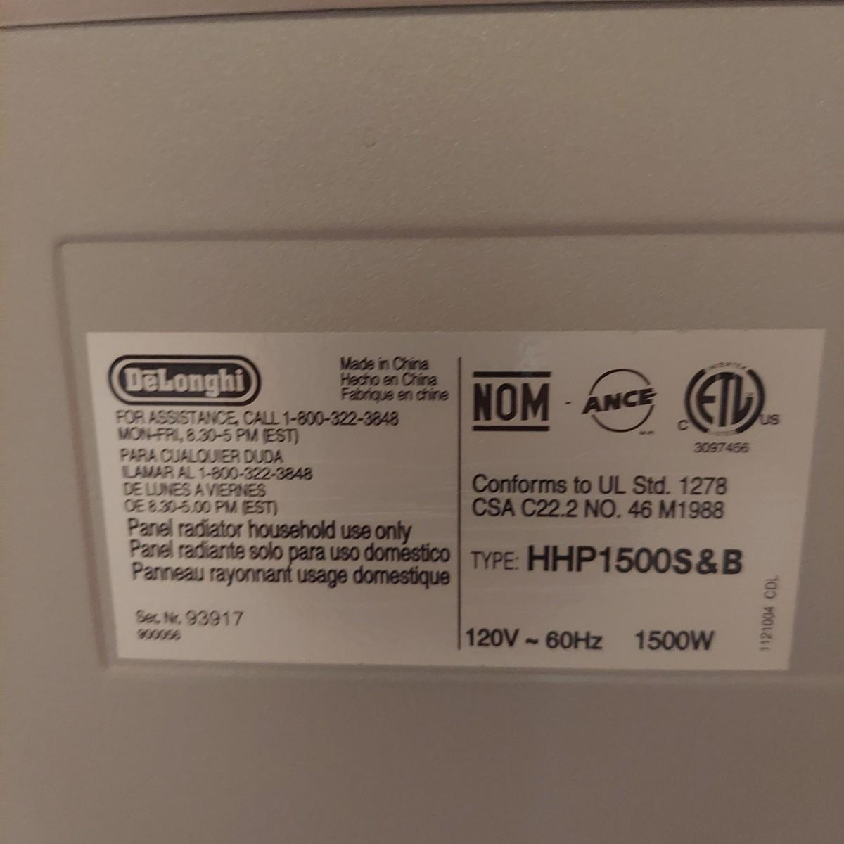 DeLonghi space heater and Cosco folding step stool. Delonghi HHP1500 S&B space heater has Flat Panel Micathermic Heating Element Provides Instant Heat while being totally silent in operation. Stylish flat panel design and lightweight construction make the heater easy to carry from room to room. The space heater plugged in and powered on. It measures approximately 26 x 11 x 23"H. Traditional Cosco folding step stool is also included. There is some wear on stool. Please see photos. It measures approximately 17.5 x 22 x 35"H. Local Pickup Only.