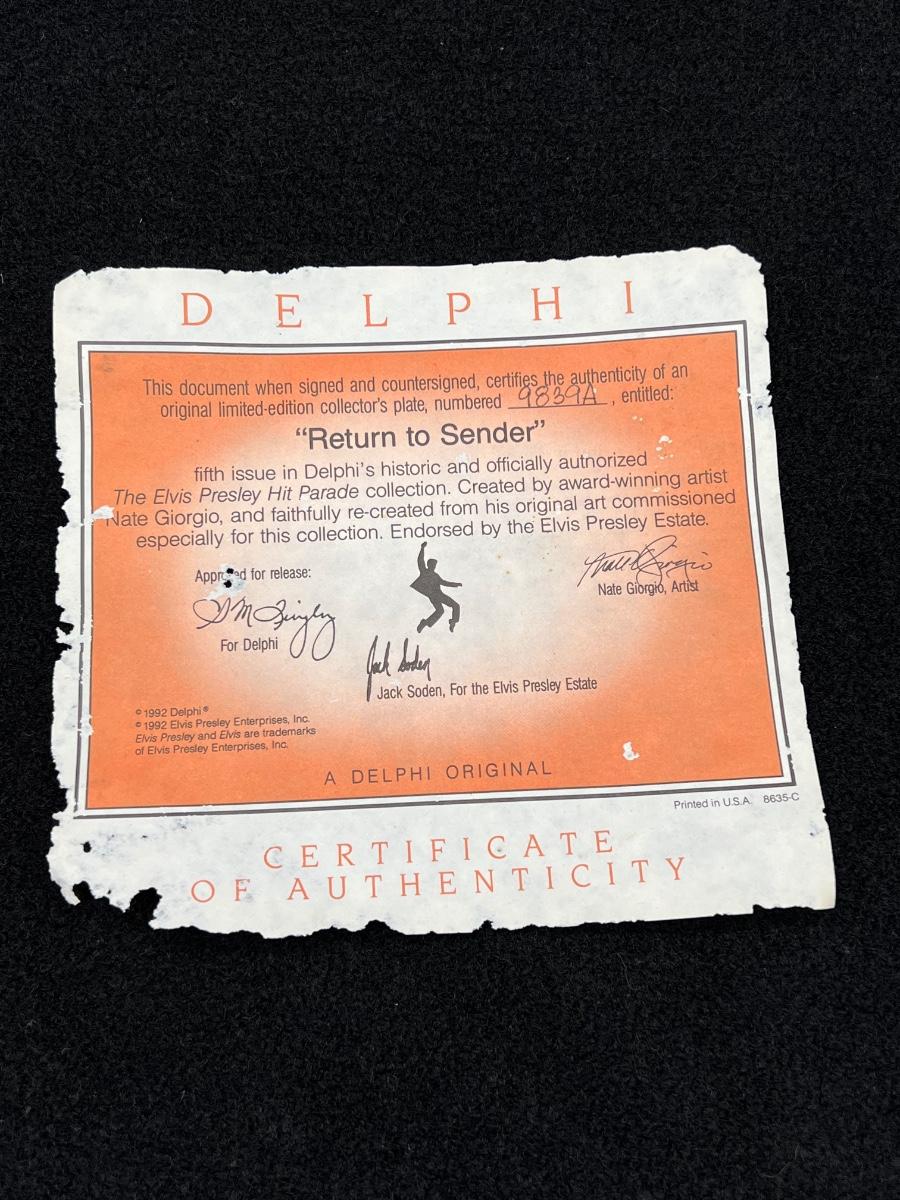 DELPHI ~ Elvis Presley ~ “Return To Sender” Plate