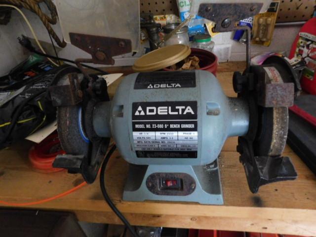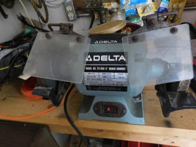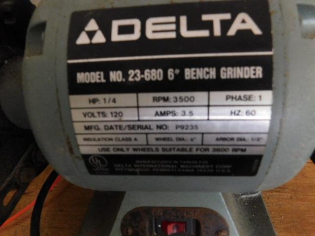 Delta 6" Bench Grinder plugged in turns on. Bring Tools to remove from bench