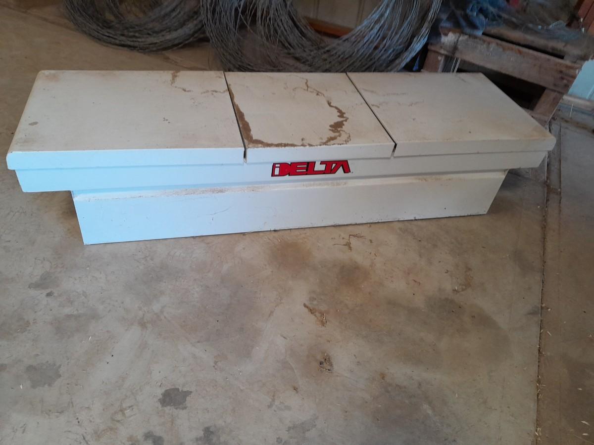 DELTA 901000 STEEL DUAL-LID FULLSIZE CROSSOVER TRUCK TOOLBOX, WITH KEYS 14.25 LBS, High-Security Push Button Lock System