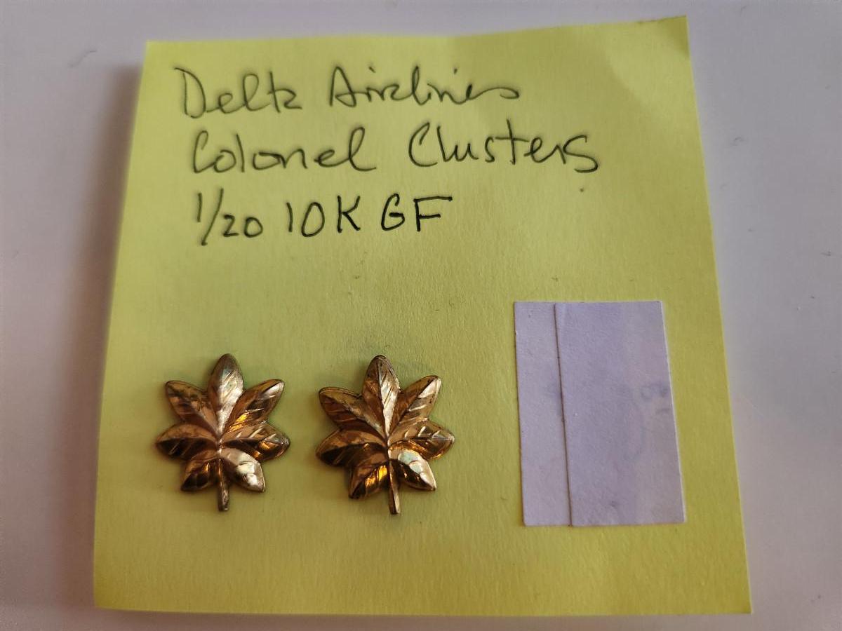 This auction lot is for a set of Delta Airlines Gold Colonel Uniform Clusters. The clusters are marked 1/20 10KGF. Where you gonna find 'em