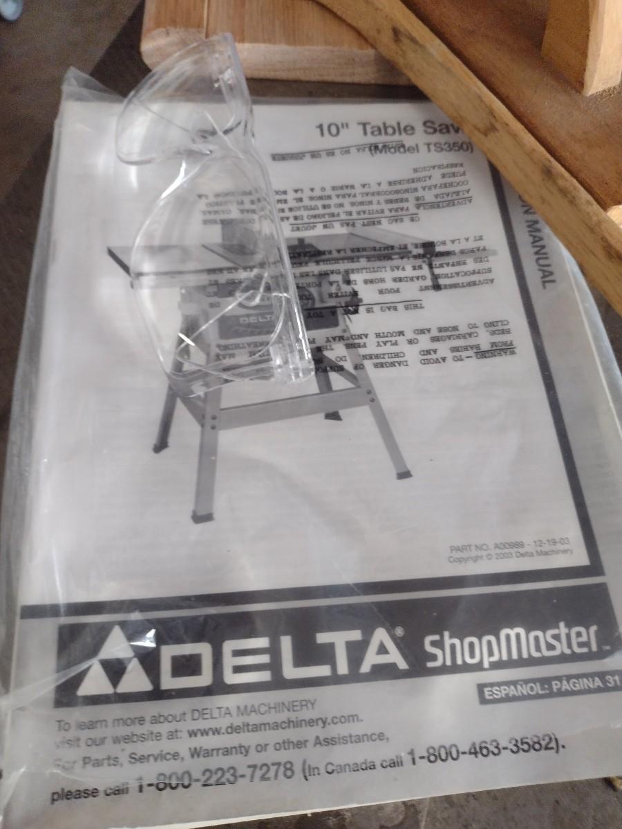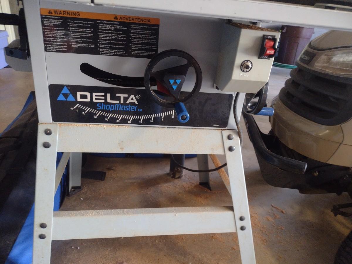 Delta Shopmaster 10" Table Saw with Guide Item stored within feet of driveway for easy and quick load.