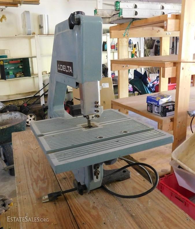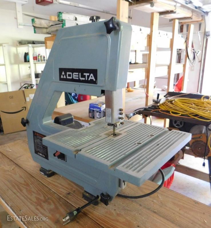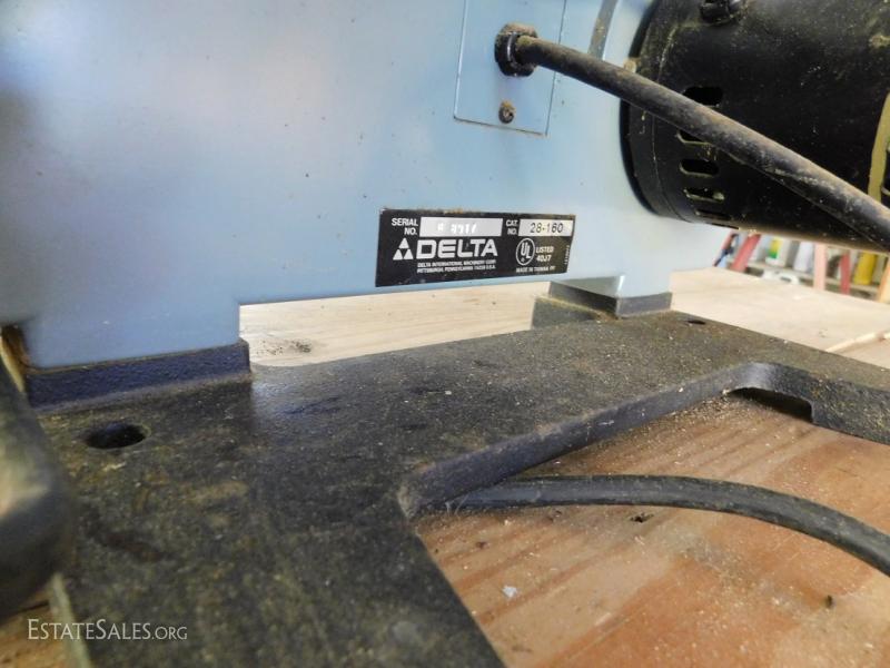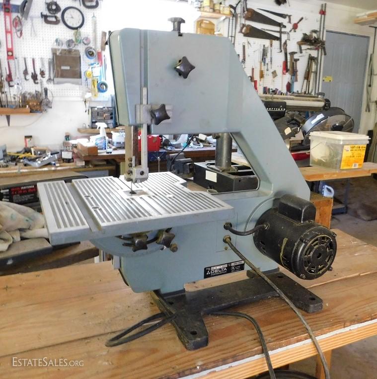 Delta Table Top Scroll Saw appears to have all pieces. Turns on.