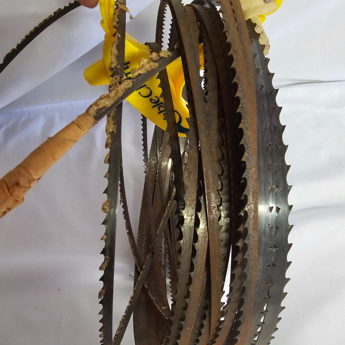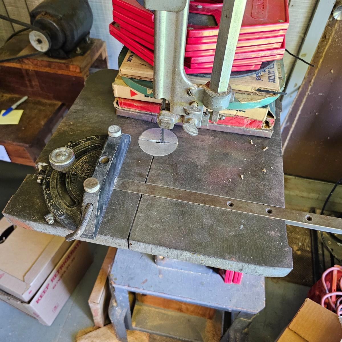 Solid metal frame and construction, this Delta bandsaw is versatile and desired in any workshop. 14" throat cutting depth, tilt table with replaceable blade insert, spring tension blade adjustment and more. Unit is mounted on a metal base with wood top, measures 17" x 26" x 64"H. Powered by a 3/4hp Wagner electric motor which powered on when plugged in. Also with this lot are 12 containers of band saw coil blade to be custom fit for length and a n adjustable rip fence for guiding stovk when cutting. There are some older used blades included as well. See photos for details. Local pickup only. Winning bidder must bring assistance to help move and load this item due to its weight and/or size.