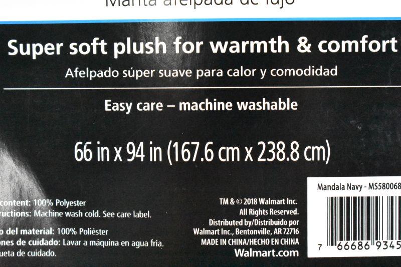 Deluxe Plush Blanket, Twin/Twin XL by Mainstays "Mandala Navy" - New