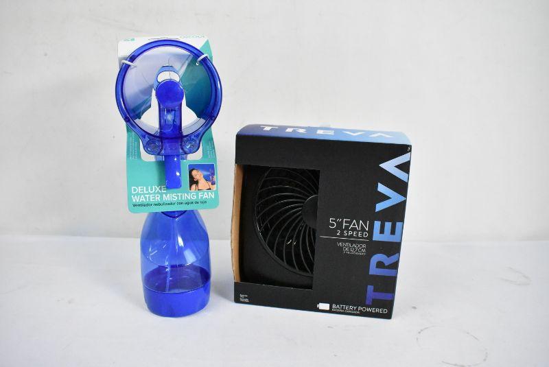 Deluxe Water Misting Fan (Blue) & 5" Battery Powered Fan (Black)