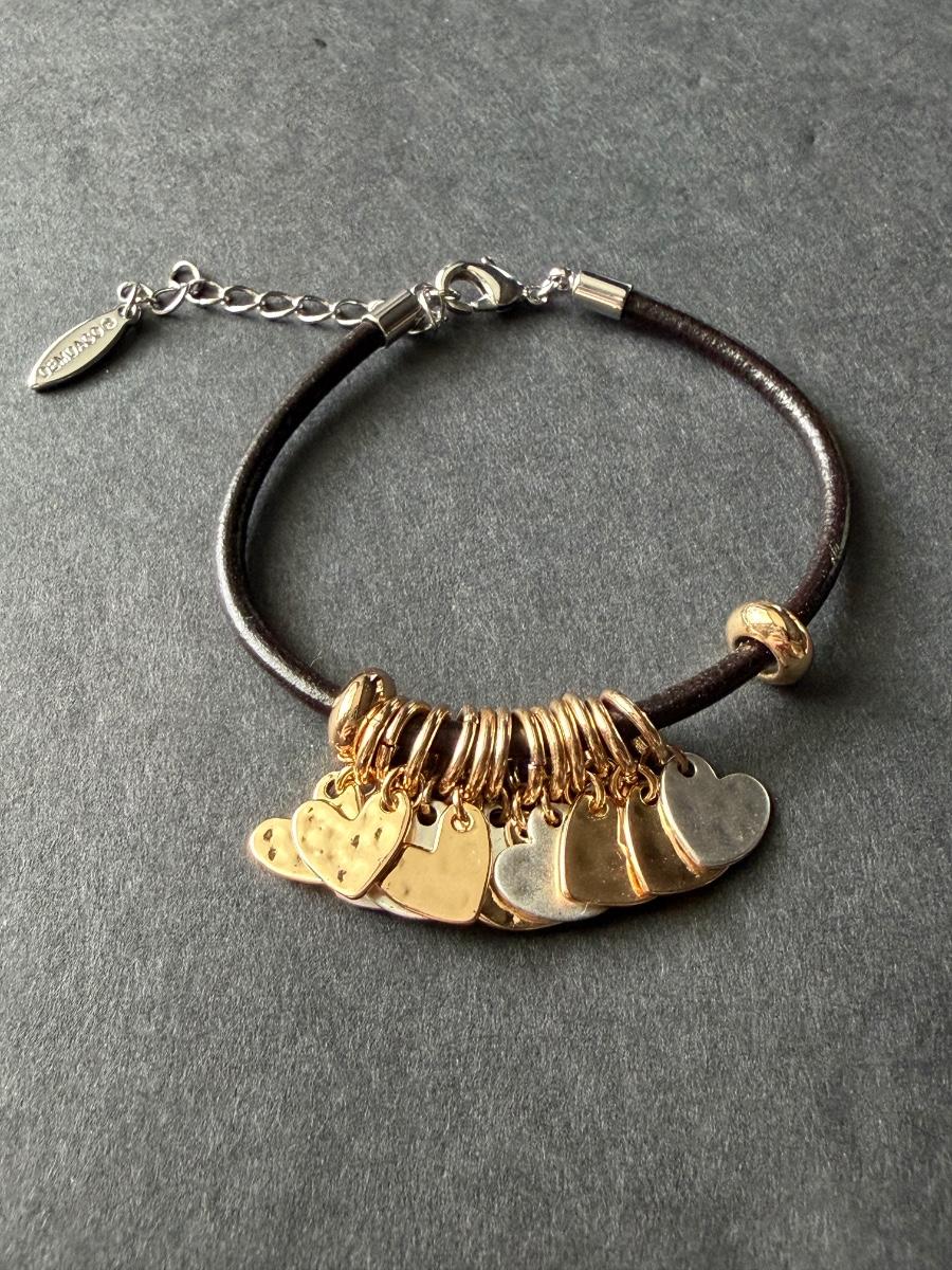 Demdaco Giving Heart leather bracelet featuring mixed-metal heart charms.