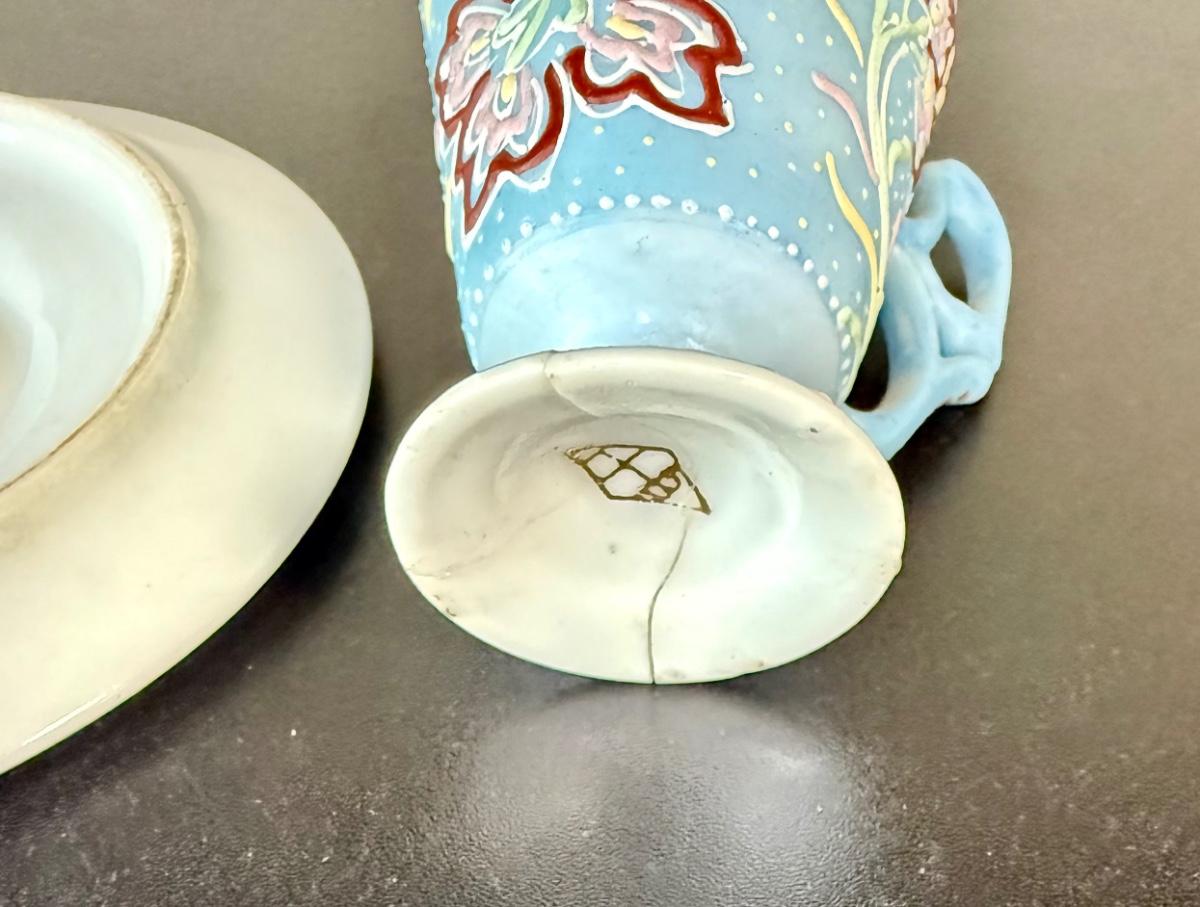 Hand painted from Japan. Teacup has been repaired, small cracks at the base.