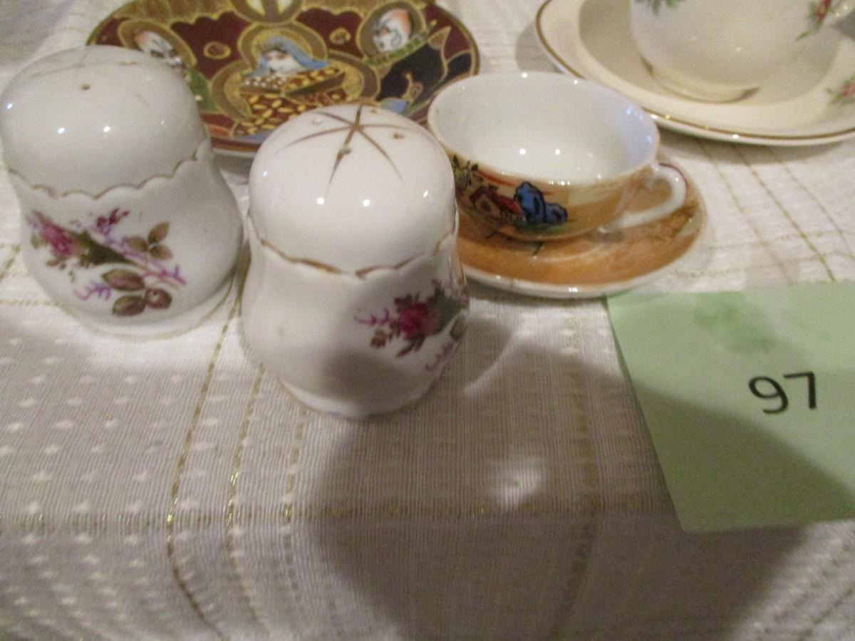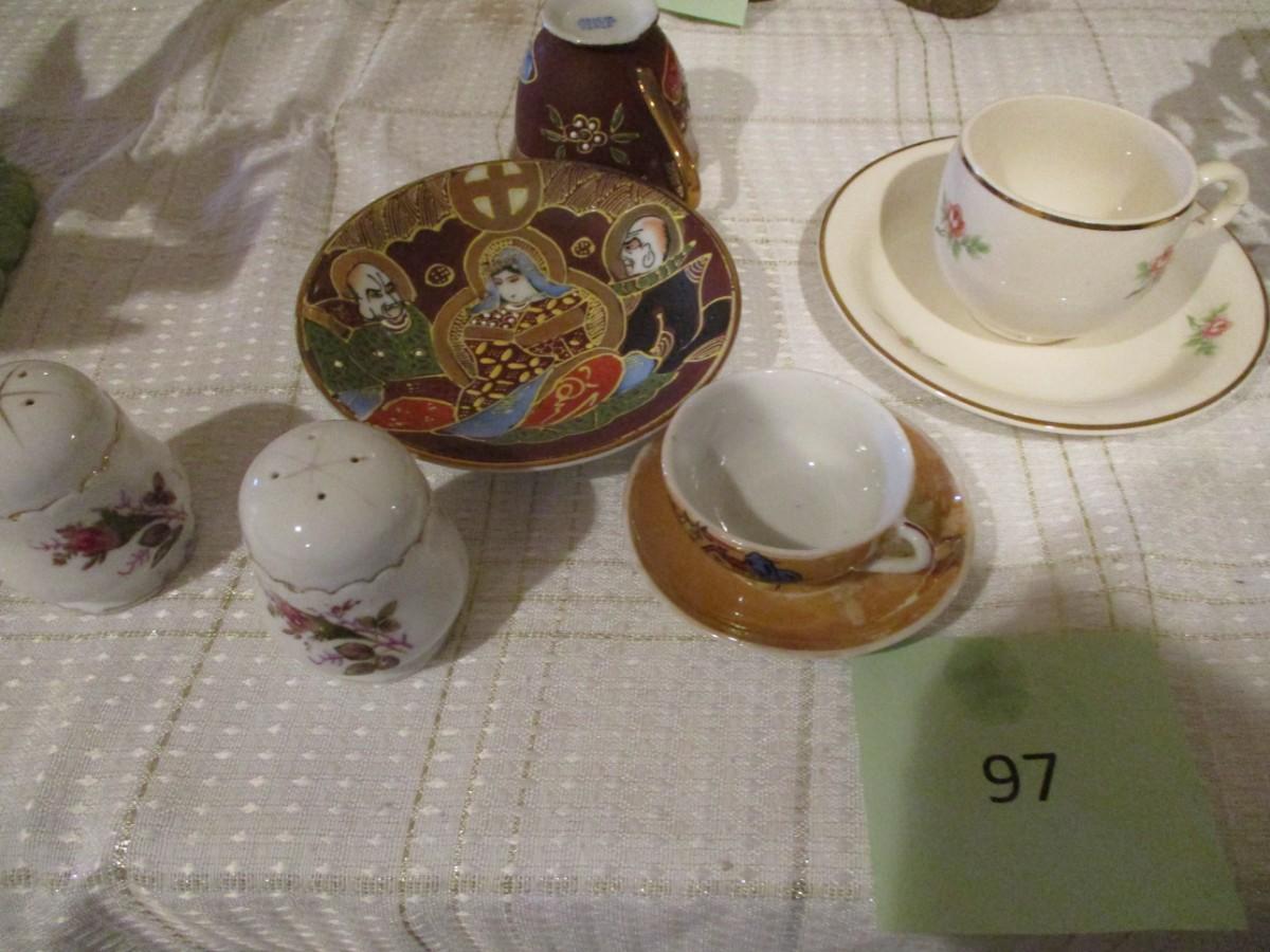 Cloissonne saucer/cup (made in occupied Japan. Salt and Pepper shaker