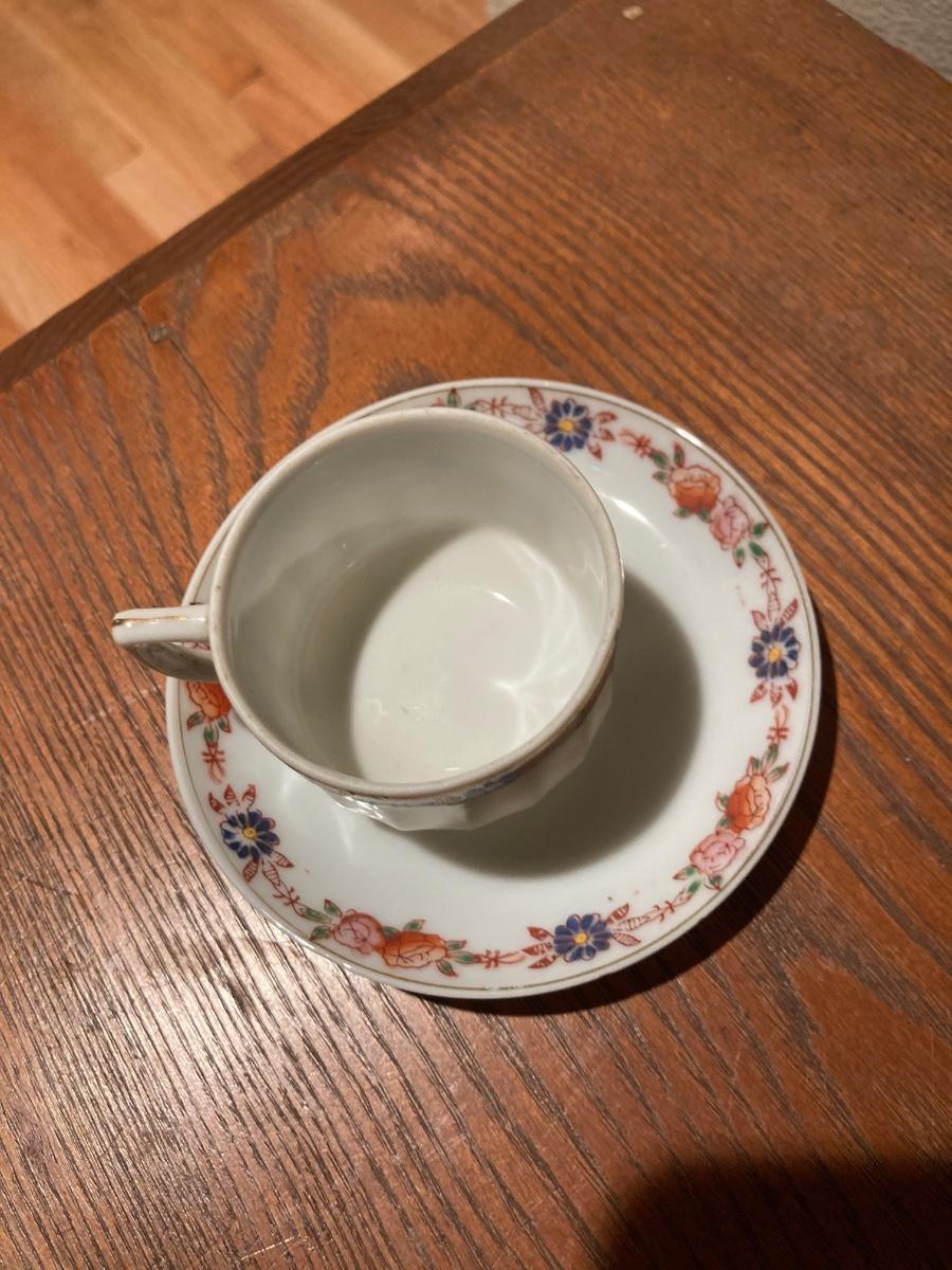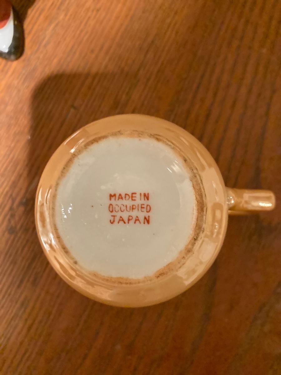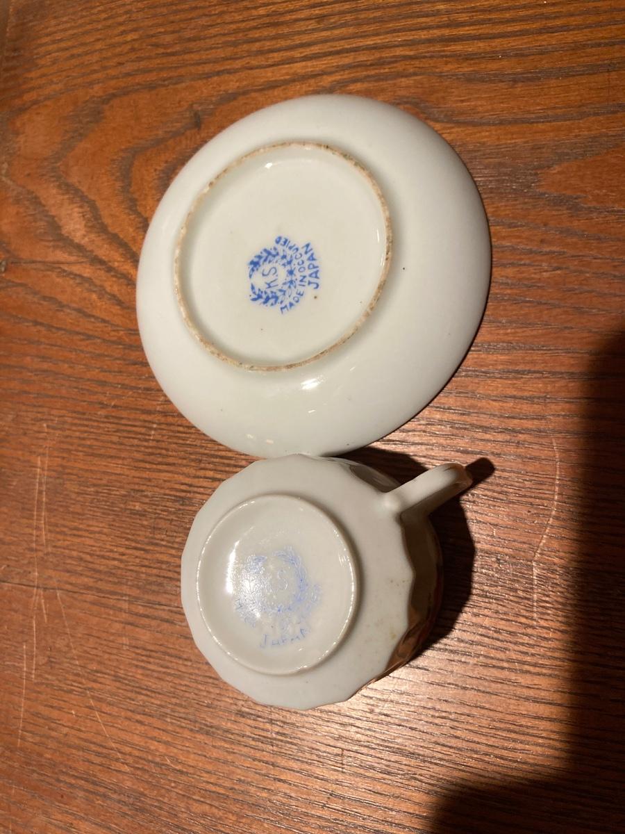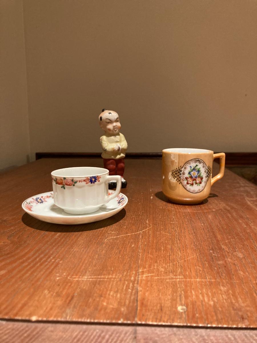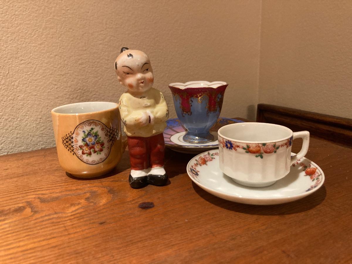 Vintage made in occupied Japan demitasse teacups with saucers and little boy